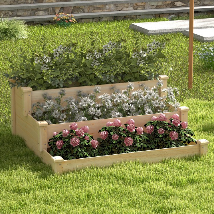 3.3 Tiered Planter Boxes: This elevated garden bed comes with a 3-tier planter box with 3 planting depths (8", 15", 22"), which are designed to accommodate different root requirements and plant sizes. Also, it is suitable for cultivating various plants, such as flowers, herbs, vegetables, fruits, saplings.
