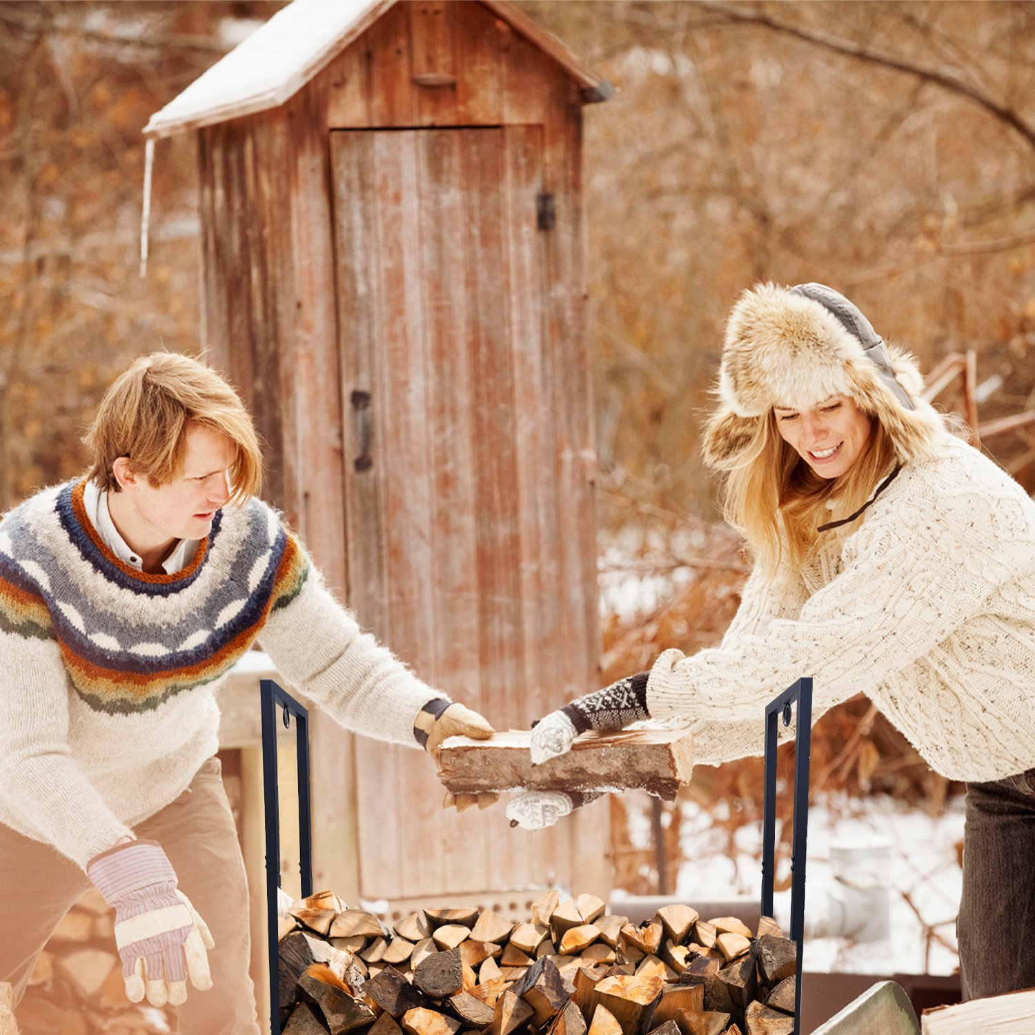 The new and unique Digital Sealed Frame Technology is constructed of fully loaded tubular steel construction, double layer black powder coated for durability, rust and weather resistance. You can place the log frame in any climate, be it hot, cold, warm or dry, and it will provide enough wood for your fireplace in all seasons.