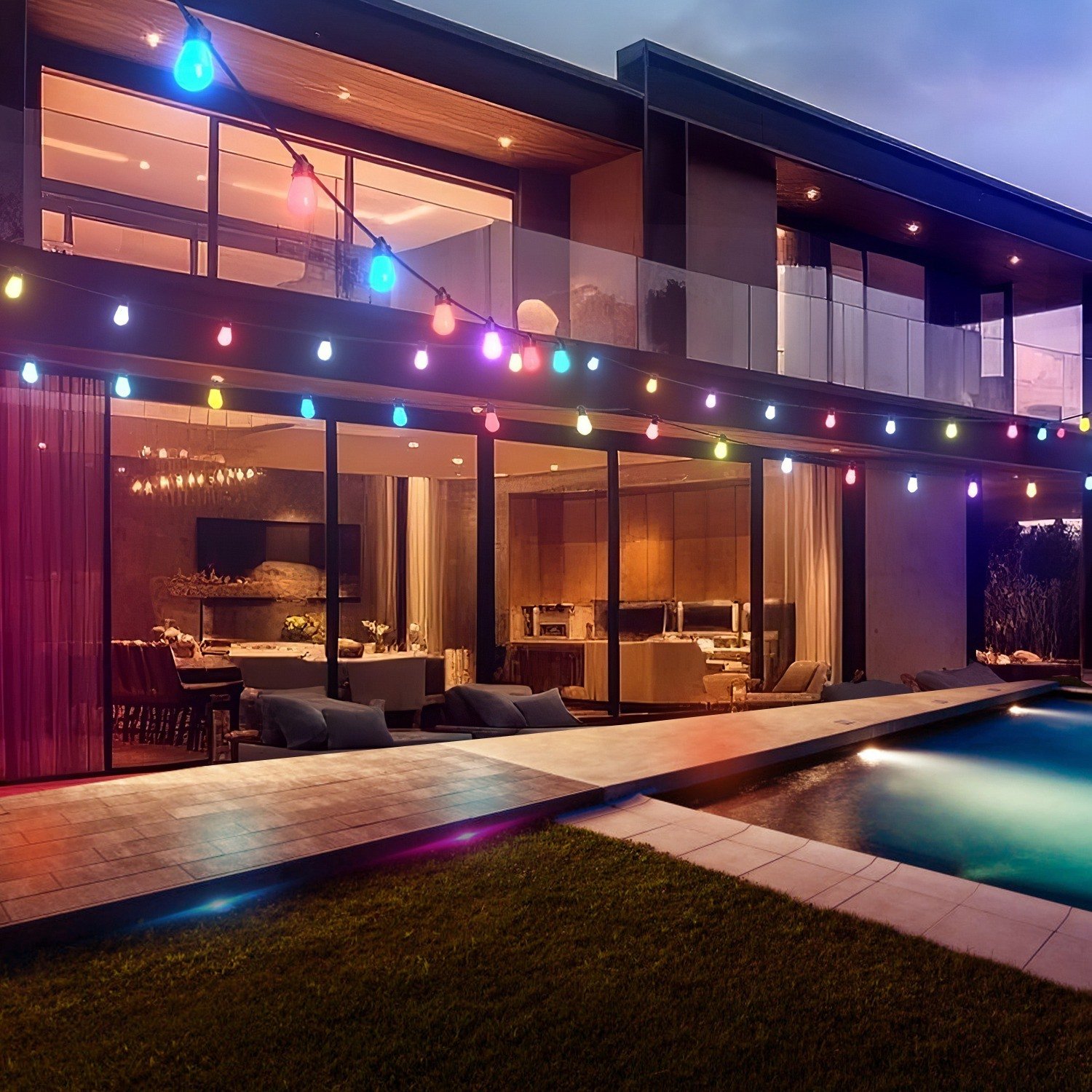 1.Our outdoor colorful string light can be easily controlled with remote control within 65.6ft or via APP.