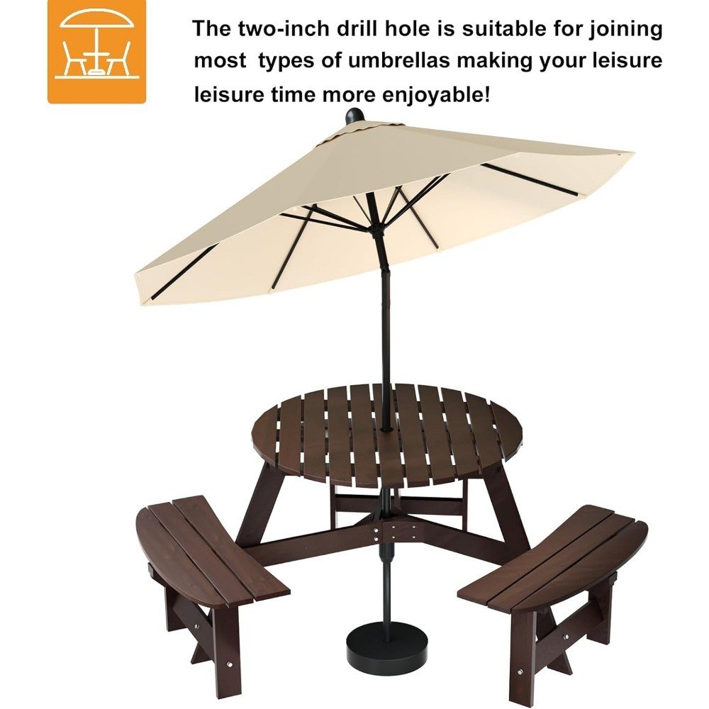 6 Person Wooden Picnic Benches, Outdoor Round Table with Umbrella Hold Design for Patio, Backyard, Garden, Adults and Kids 6 Person Wooden Picnic Benches, Outdoor Round Table with Umbrella Hold Design for Patio, Backyard, Garden, Adults and Kids 6 Person Wooden Picnic Benches, Outdoor Round Table with Umbrella Hold Design for Patio, Backyard, Garden, Adults and Kids 6 Person Wooden Picnic Benches, Outdoor Round Table with Umbrella Hold Design for Patio, Backyard, Garden, Adults and Kids 6 Person Wooden Picnic Benches, Outdoor Round Table with Umbrella Hold Design for Patio, Backyard, Garden, Adults and Kids 6 Person Wooden Picnic Benches, Outdoor Round Table with Umbrella Hold Design for Patio, Backyard, Garden, Adults and Kids 6 Person Wooden Picnic Benches, Outdoor Round Table with Umbrella Hold Design for Patio, Backyard, Garden, Adults and Kids