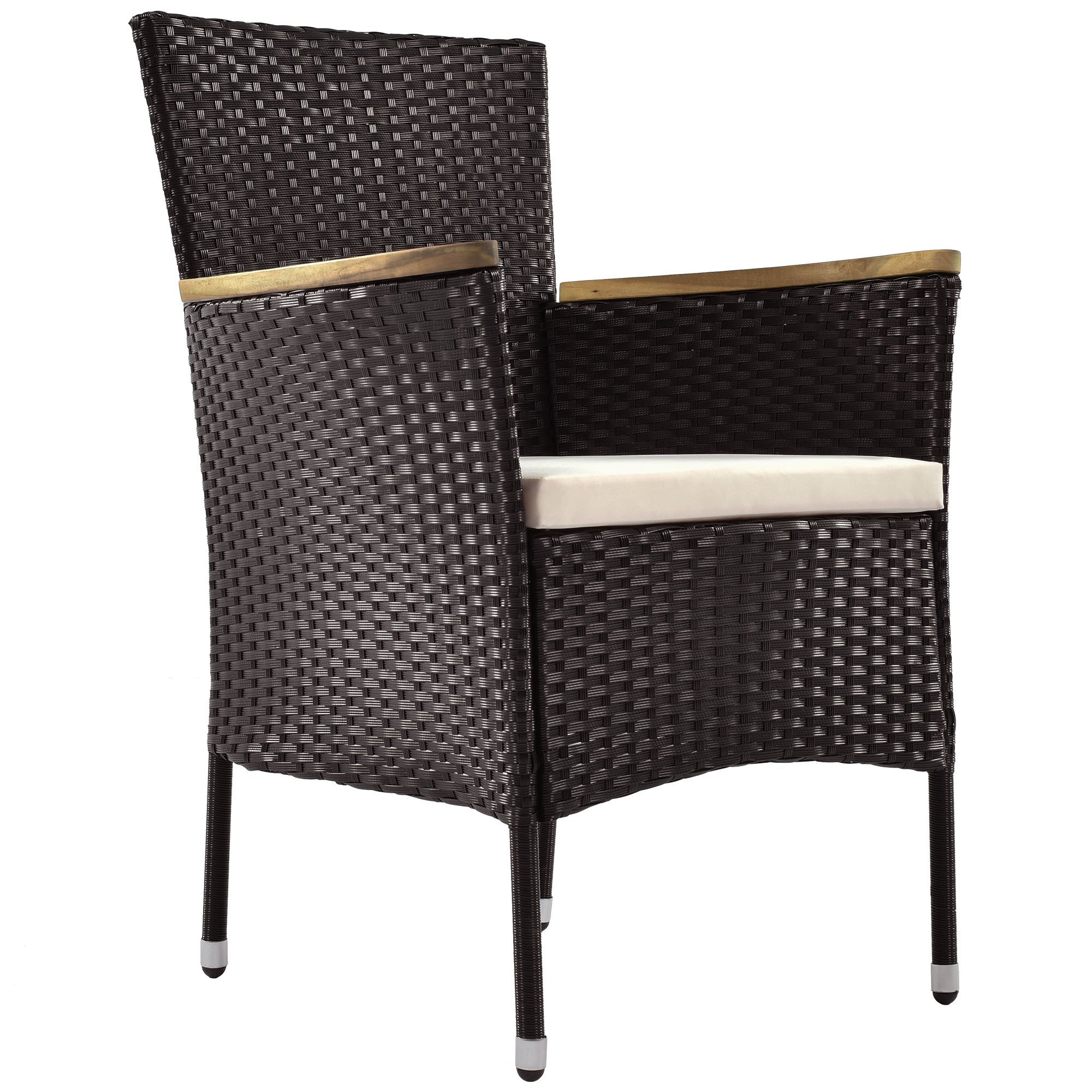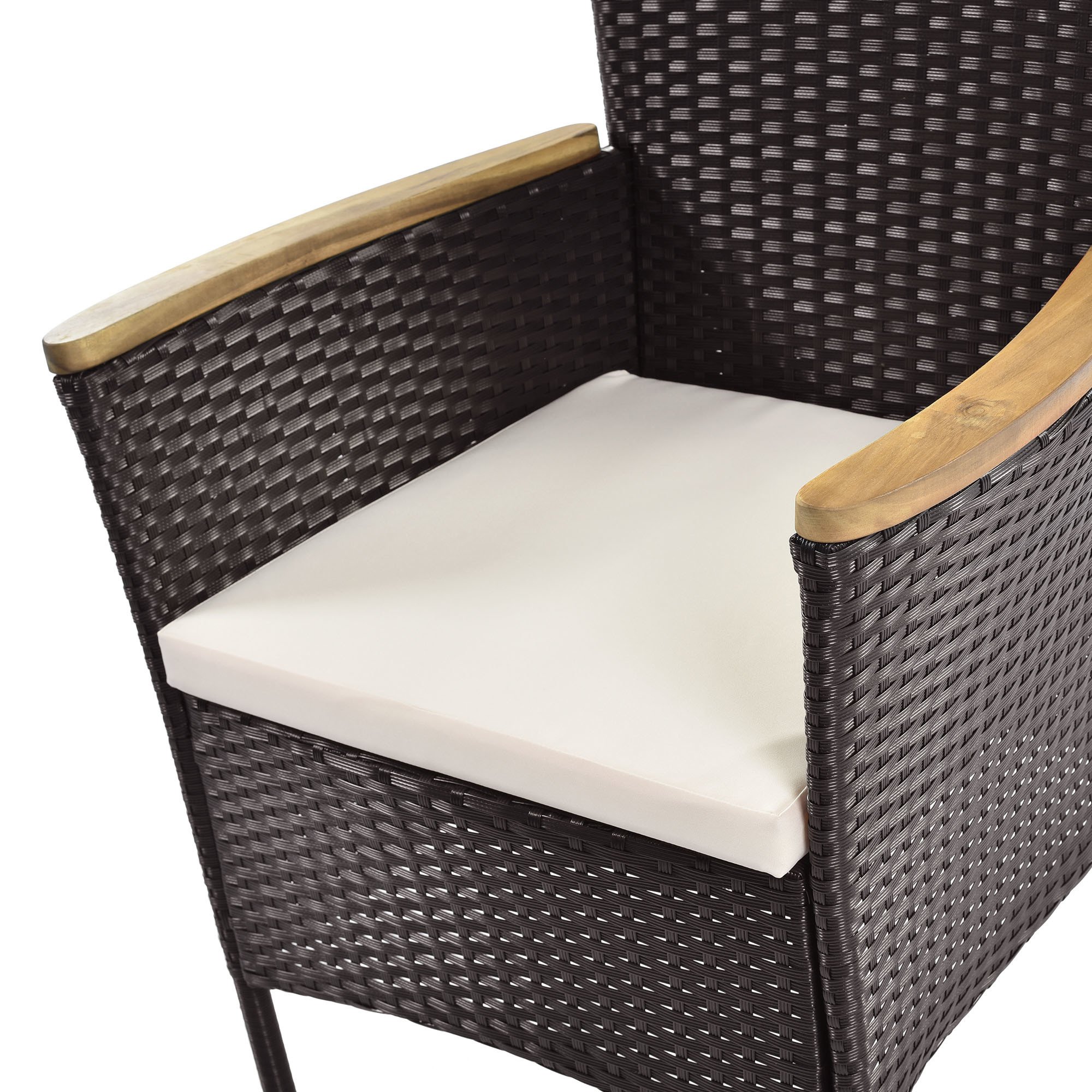 Home > 7-Piece Outdoor Patio Dining Set, Garden PE Rattan Wicker Dining Table and Chairs Set, Acacia Wood Tabletop, Stackable Armrest Chairs with Cushions