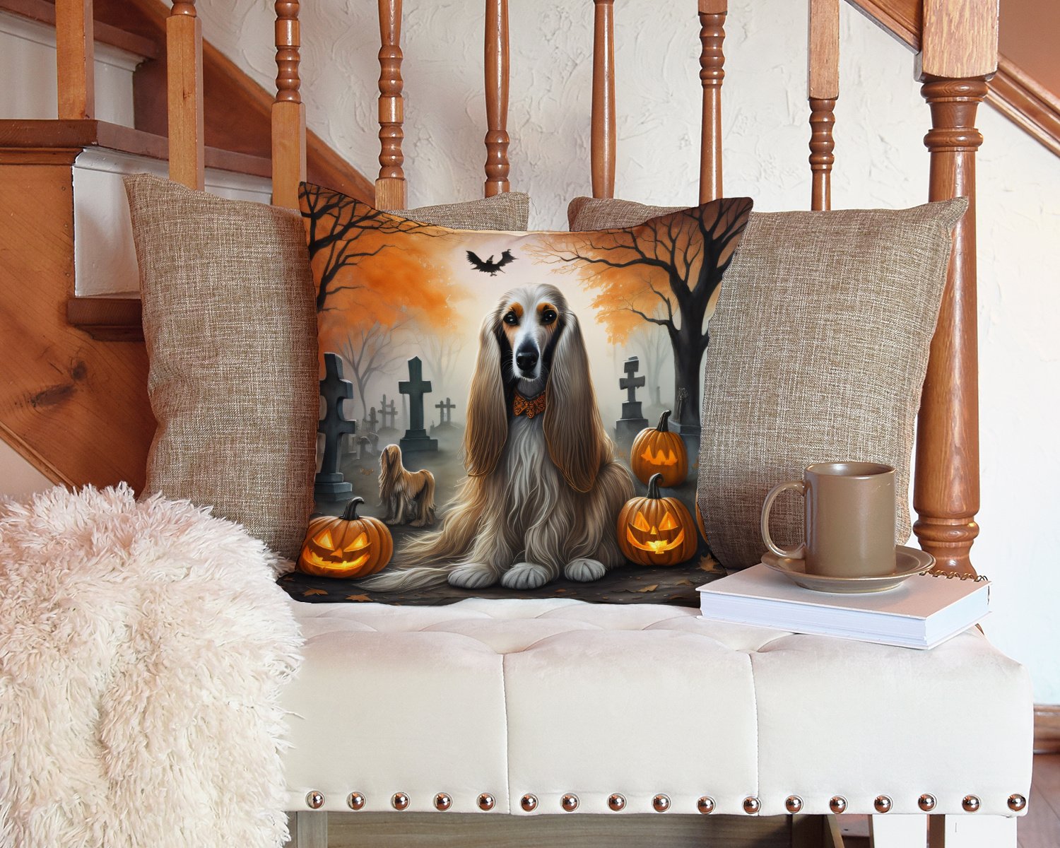 Home > Afghan Hound Spooky Halloween Throw Pillow Machine Washable, Indoor Outdoor Decorative Pillow for Couch, Bed or Patio, 14Hx14W