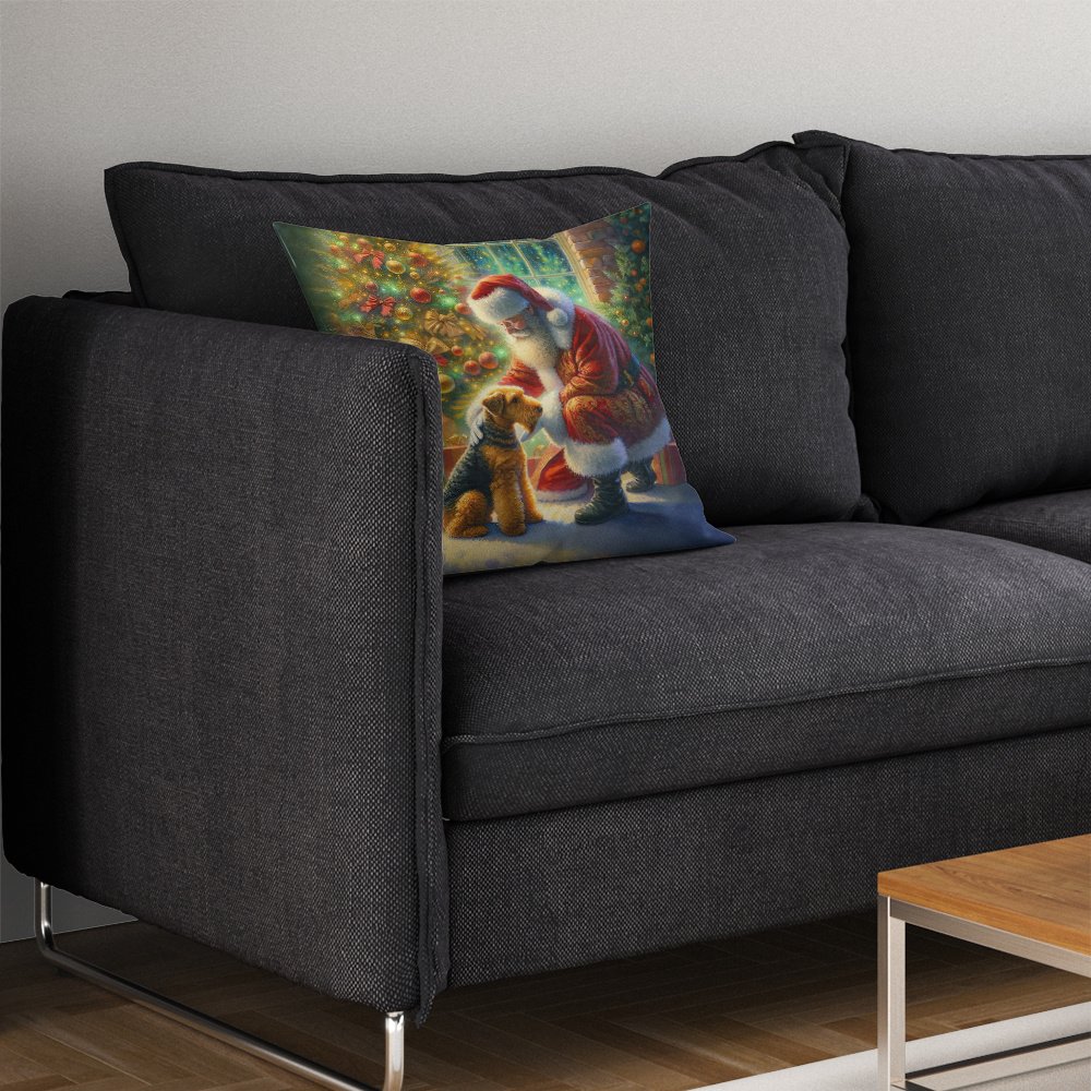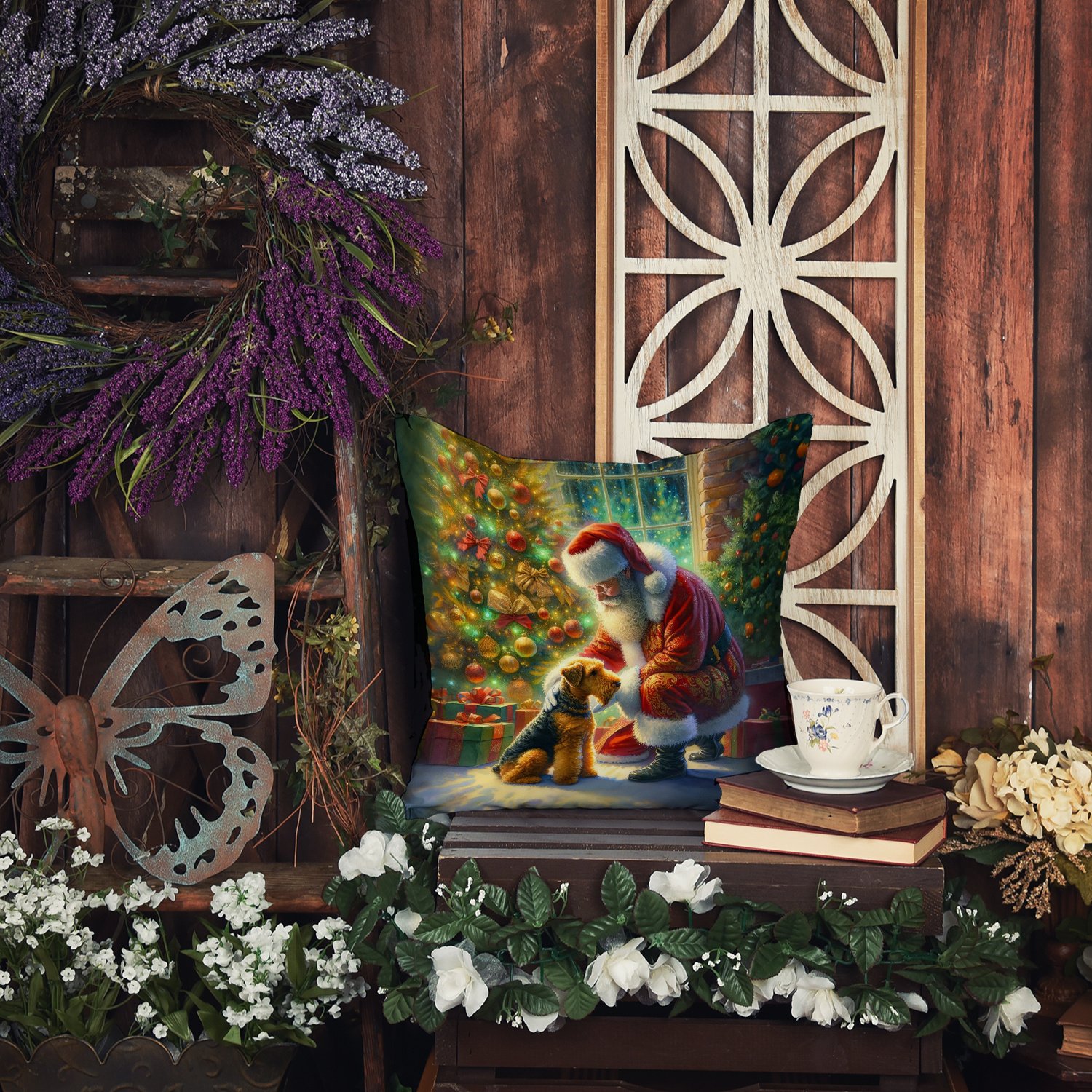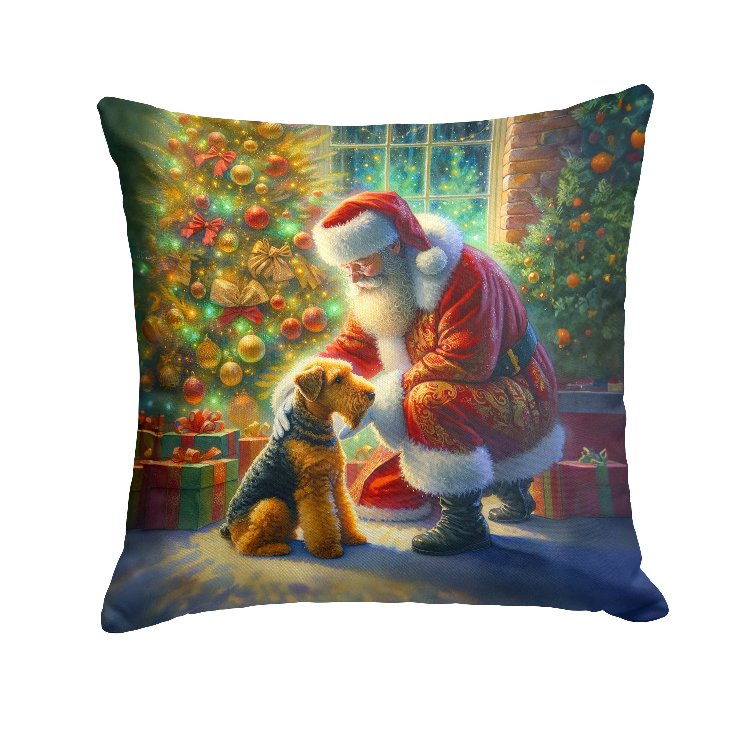 Home > Airedale Terrier and Santa Claus Throw Pillow Machine Washable, Indoor Outdoor Decorative Pillow for Couch, Bed or Patio, 14Hx14W