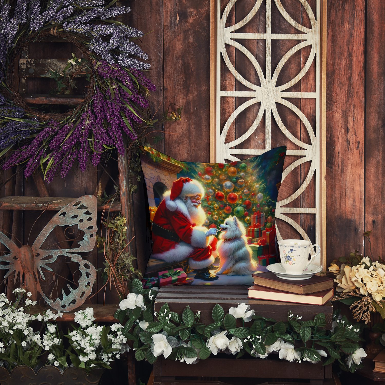 American Eskimo and Santa Claus Throw Pillow Machine Washable, Indoor Outdoor Decorative Pillow for Couch, Bed or Patio, 14Hx14W