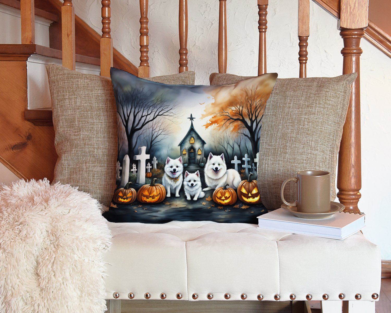 Home > American Eskimo Spooky Halloween Throw Pillow Machine Washable, Indoor Outdoor Decorative Pillow for Couch, Bed or Patio, 14Hx14W
