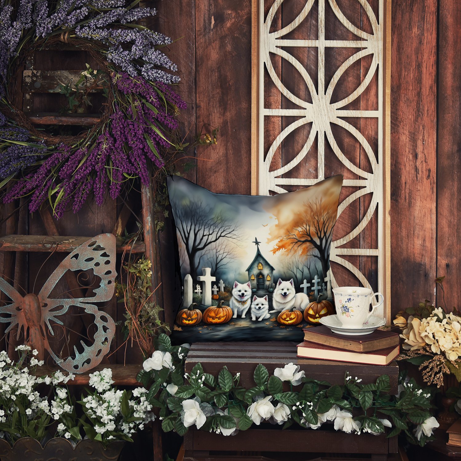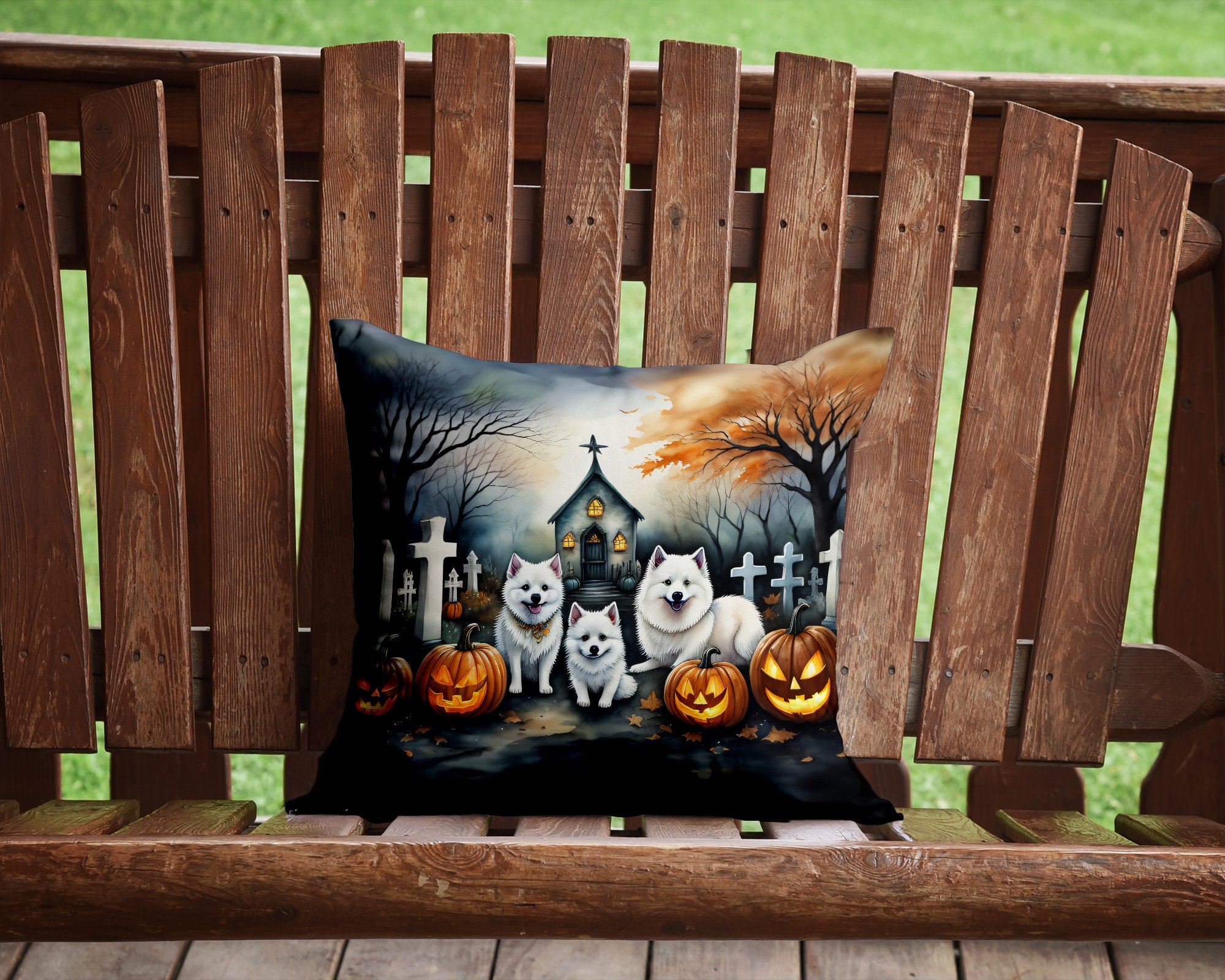 American Eskimo Spooky Halloween Throw Pillow Machine Washable, Indoor Outdoor Decorative Pillow for Couch, Bed or Patio, 14Hx14W
