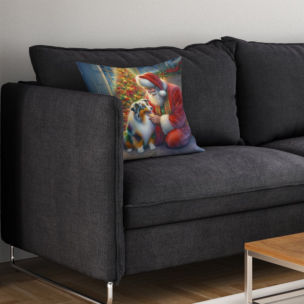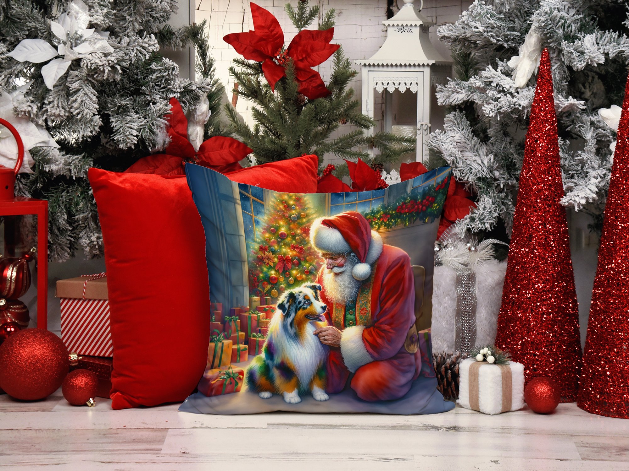 Australian Shepherd and Santa Claus Throw Pillow Machine Washable, Indoor Outdoor Decorative Pillow for Couch, Bed or Patio, 14Hx14W