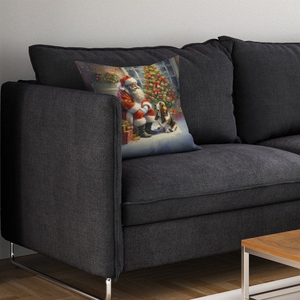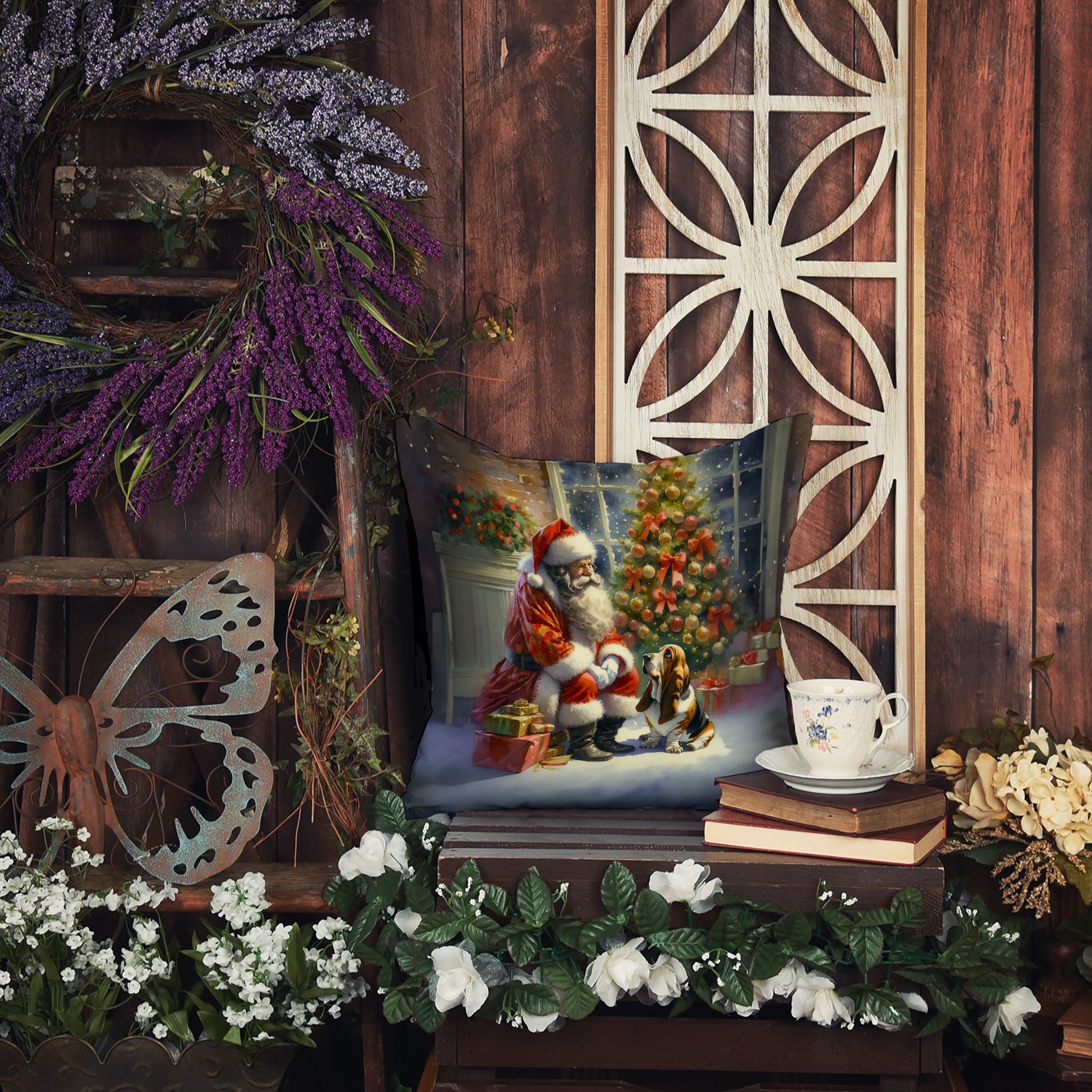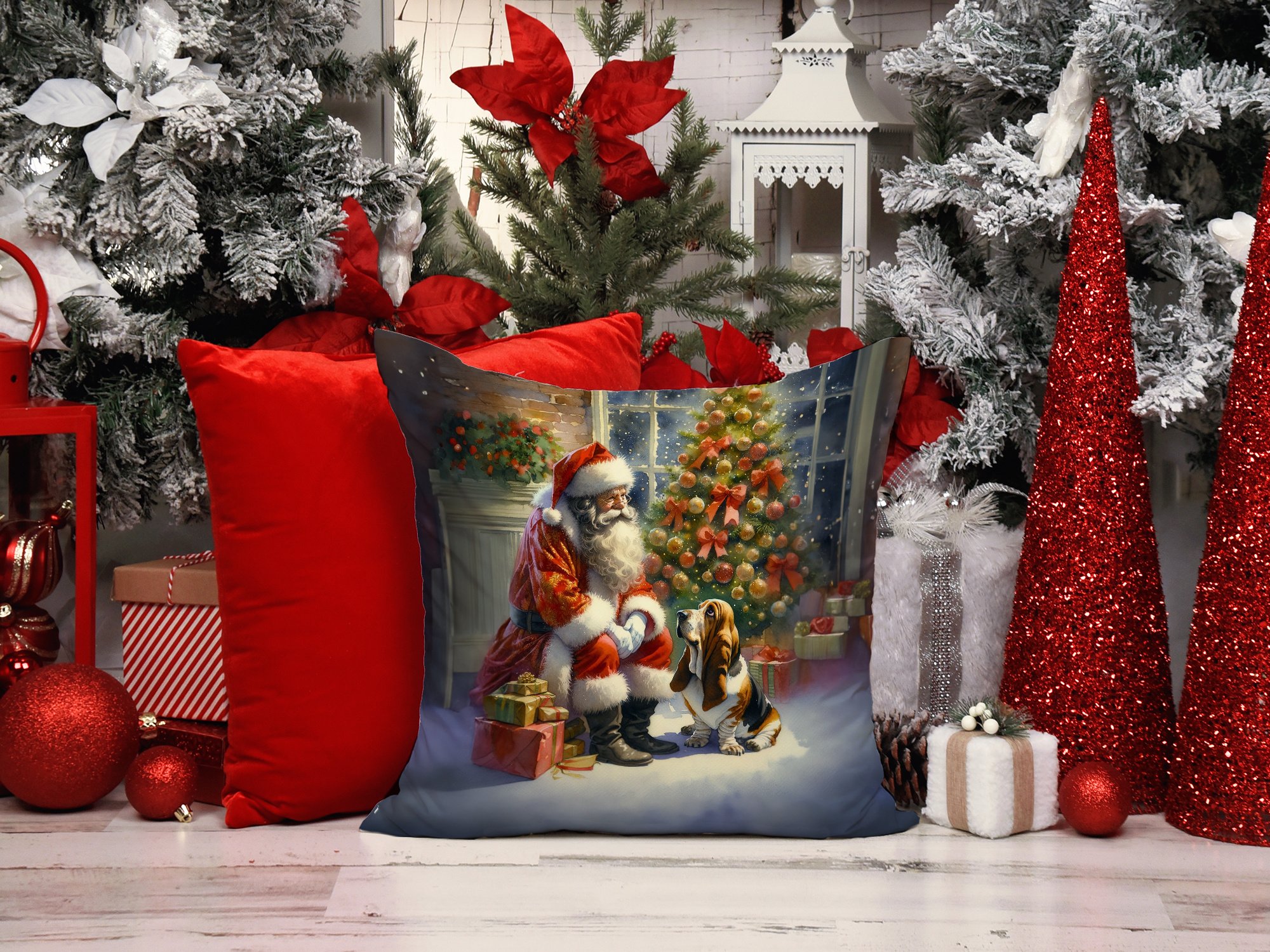 Basset Hound and Santa Claus Throw Pillow Machine Washable, Indoor Outdoor Decorative Pillow for Couch, Bed or Patio, 14Hx14W