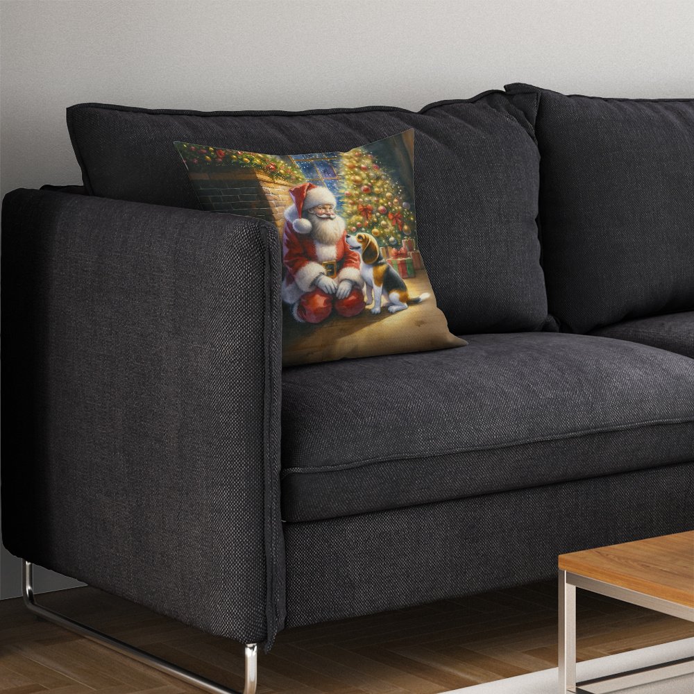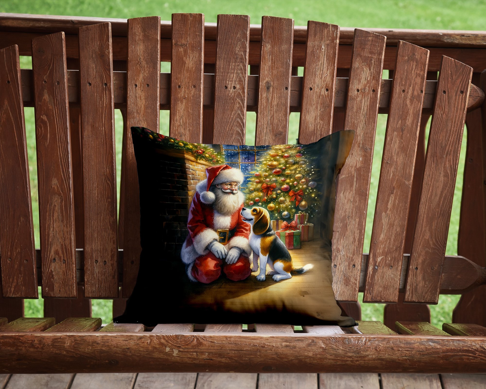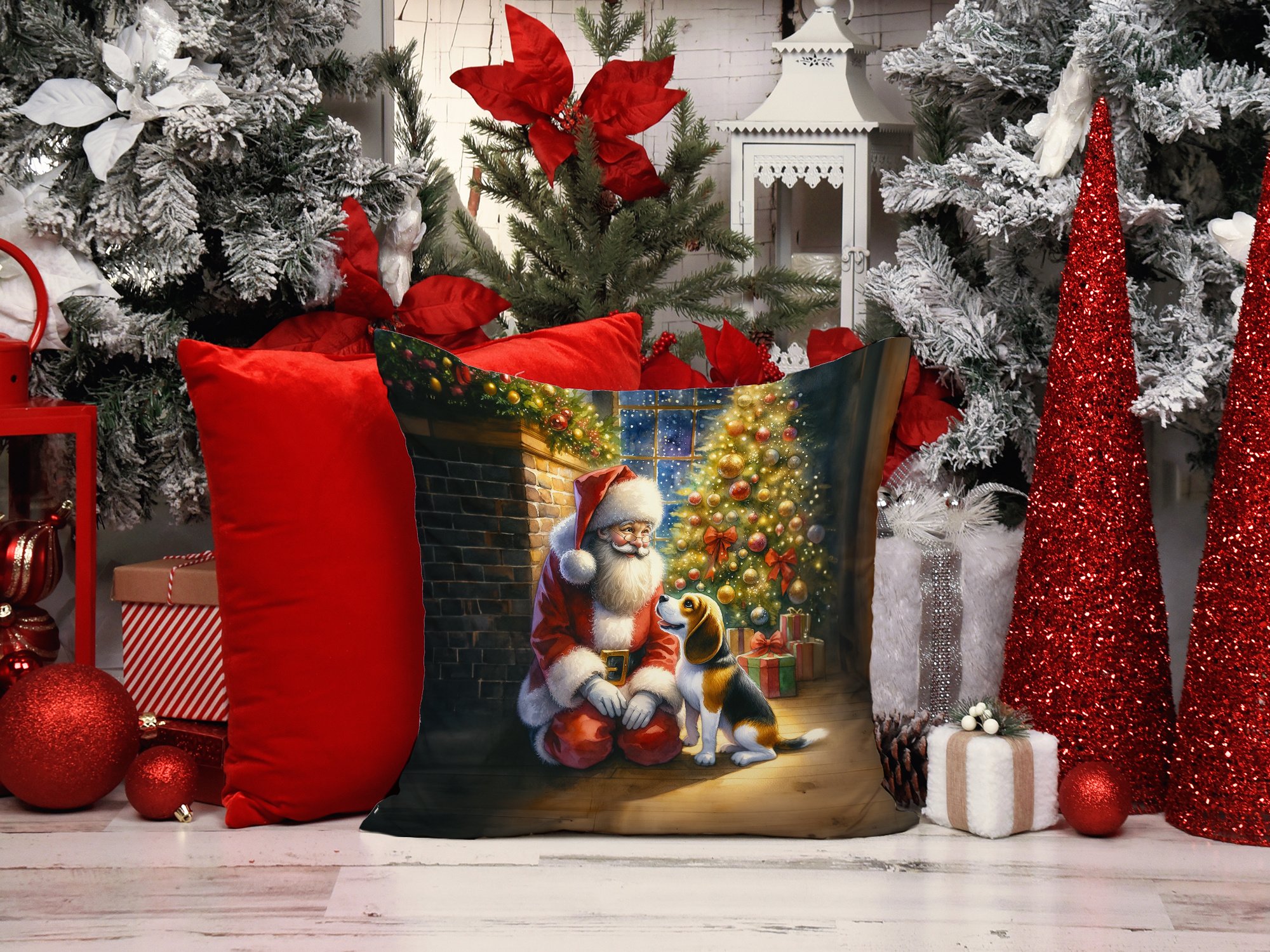 Beagle and Santa Claus Throw Pillow Machine Washable, Indoor Outdoor Decorative Pillow for Couch, Bed or Patio, 14Hx14W