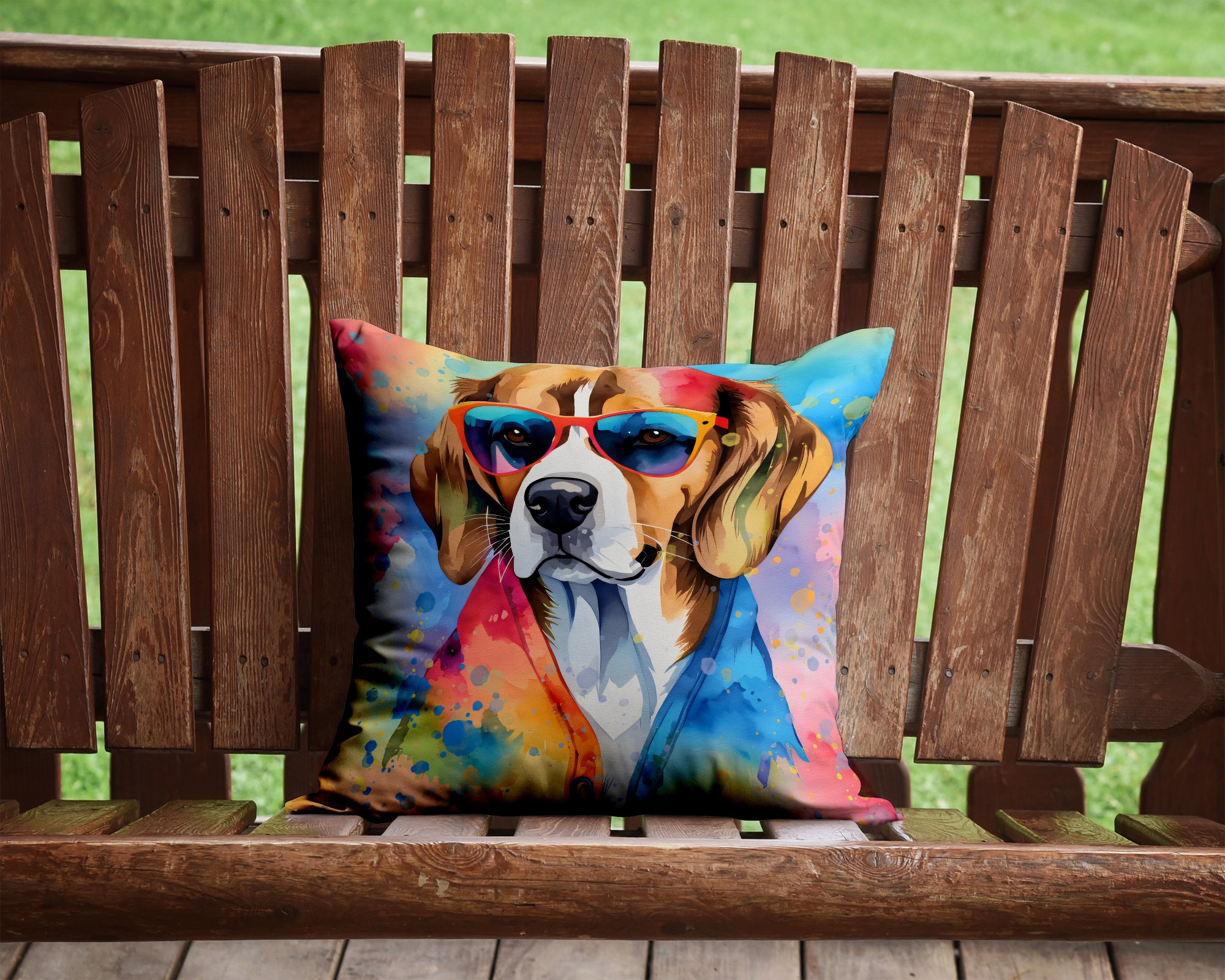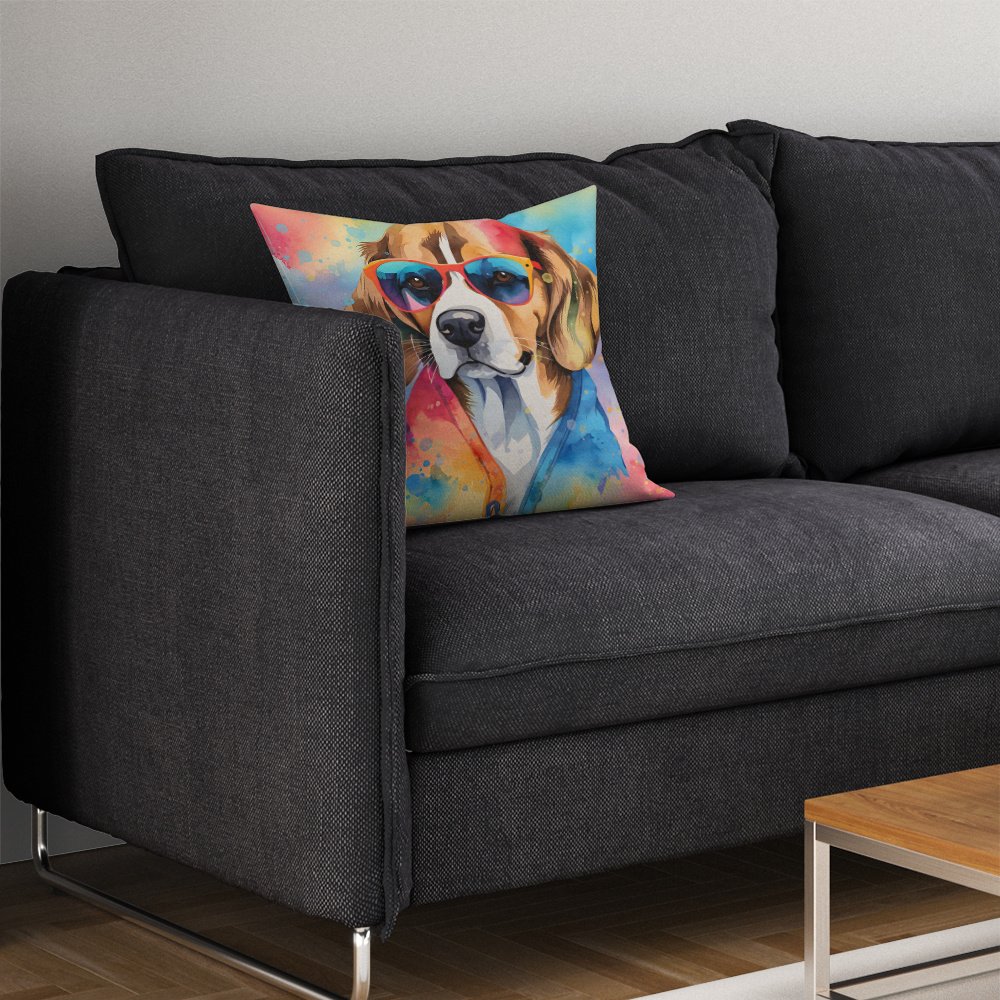 Beagle Hippie Dawg Throw Pillow Machine Washable, Indoor Outdoor Decorative Pillow for Couch, Bed or Patio, 14Hx14W