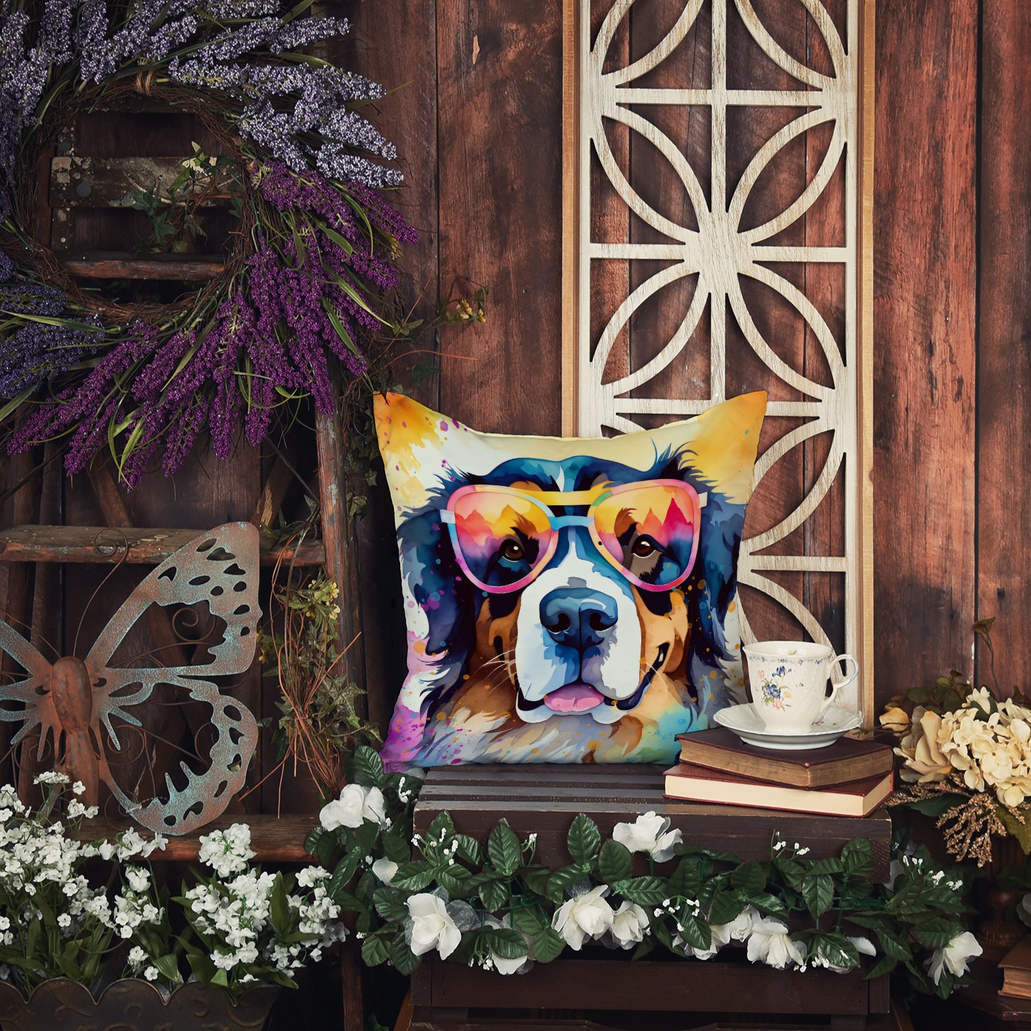 Bernese Mountain Dog Hippie Dawg Throw Pillow Machine Washable, Indoor Outdoor Decorative Pillow for Couch, Bed or Patio, 14Hx14W