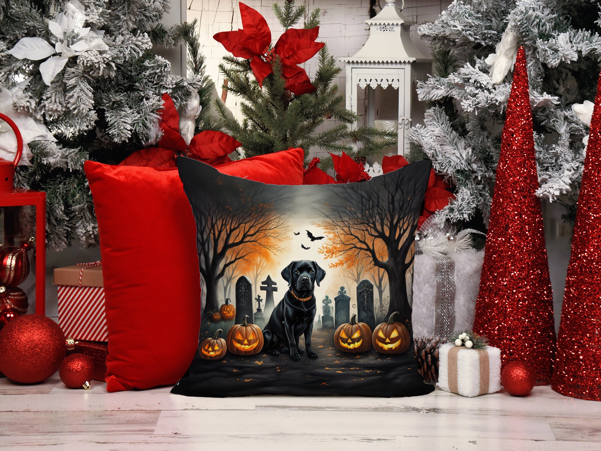Home > Black Labrador Retriever Spooky Halloween Throw Pillow Machine Washable, Indoor Outdoor Decorative Pillow for Couch, Bed or Patio, 14Hx14W