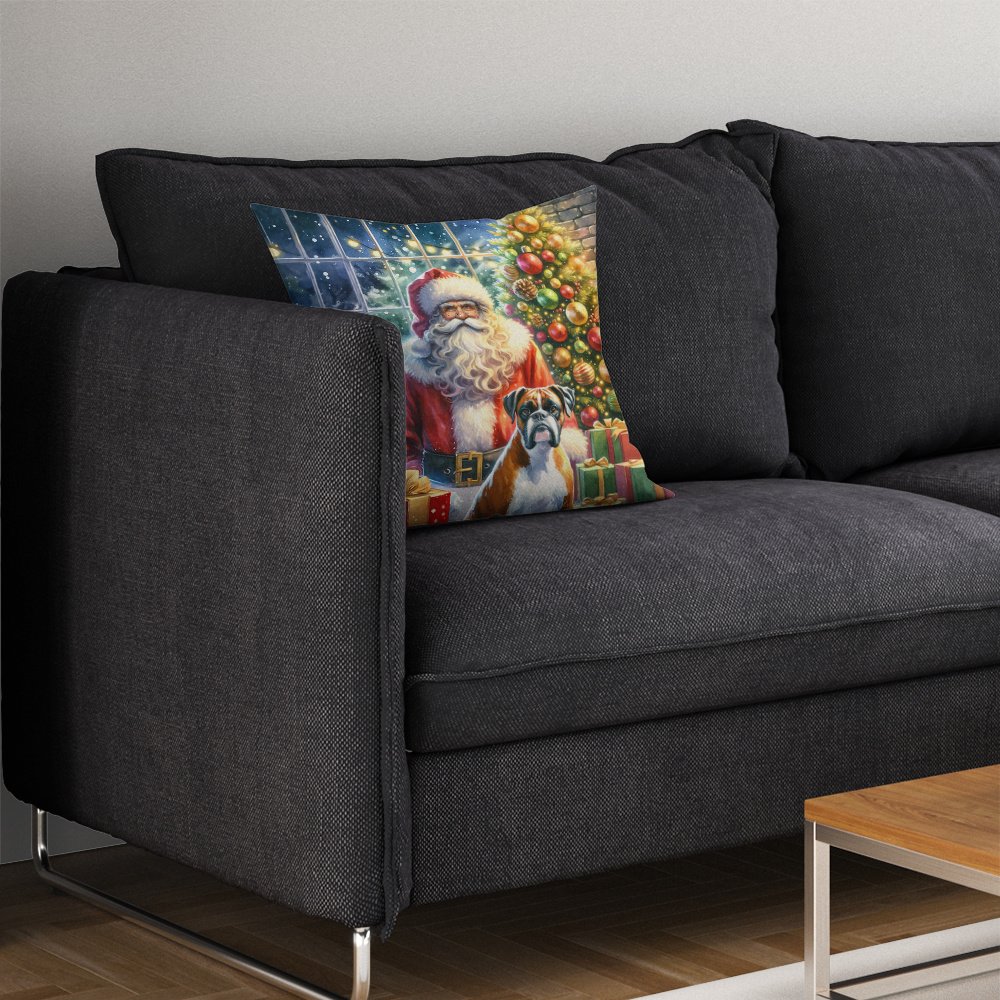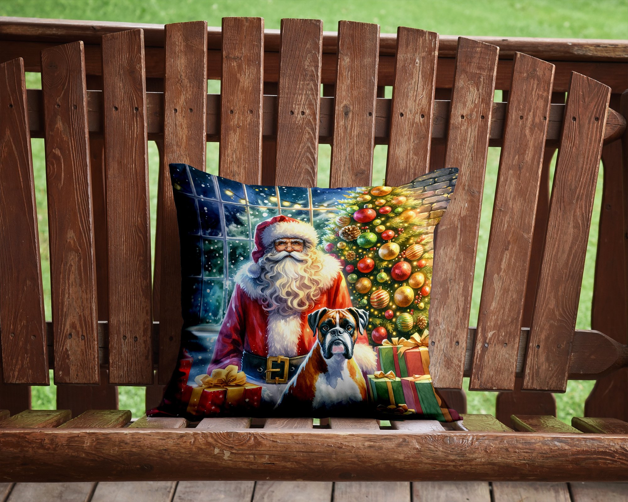 Boxer and Santa Claus Throw Pillow Machine Washable, Indoor Outdoor Decorative Pillow for Couch, Bed or Patio, 14Hx14W