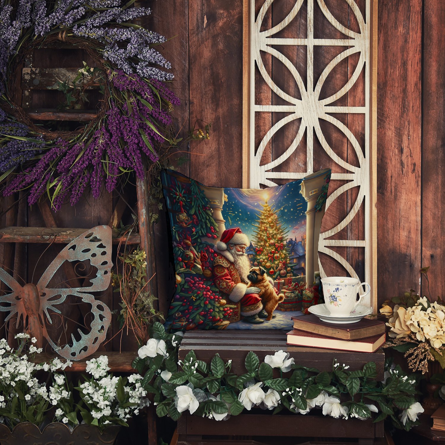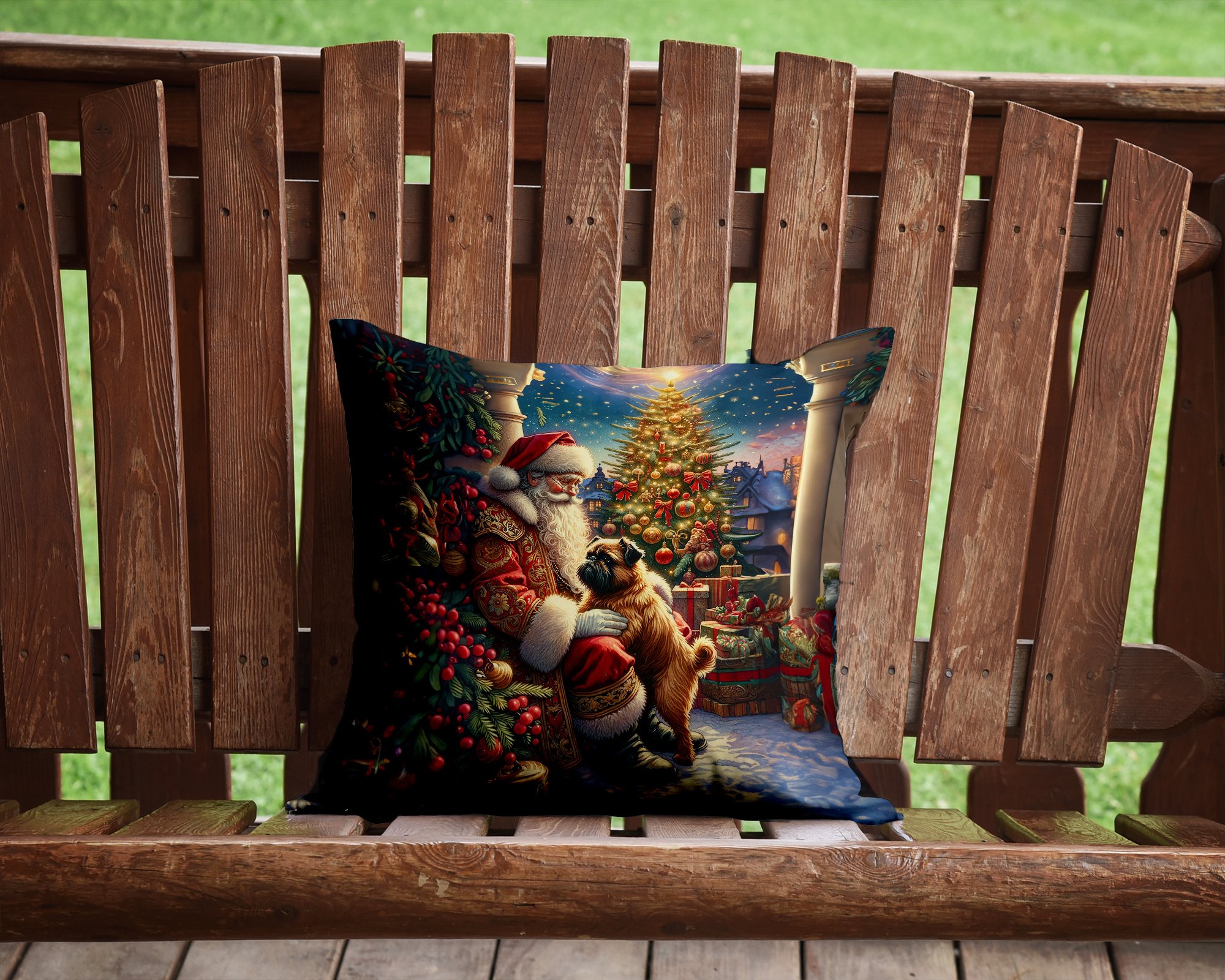 Brussels Griffon and Santa Claus Throw Pillow Machine Washable, Indoor Outdoor Decorative Pillow for Couch, Bed or Patio, 14Hx14W
