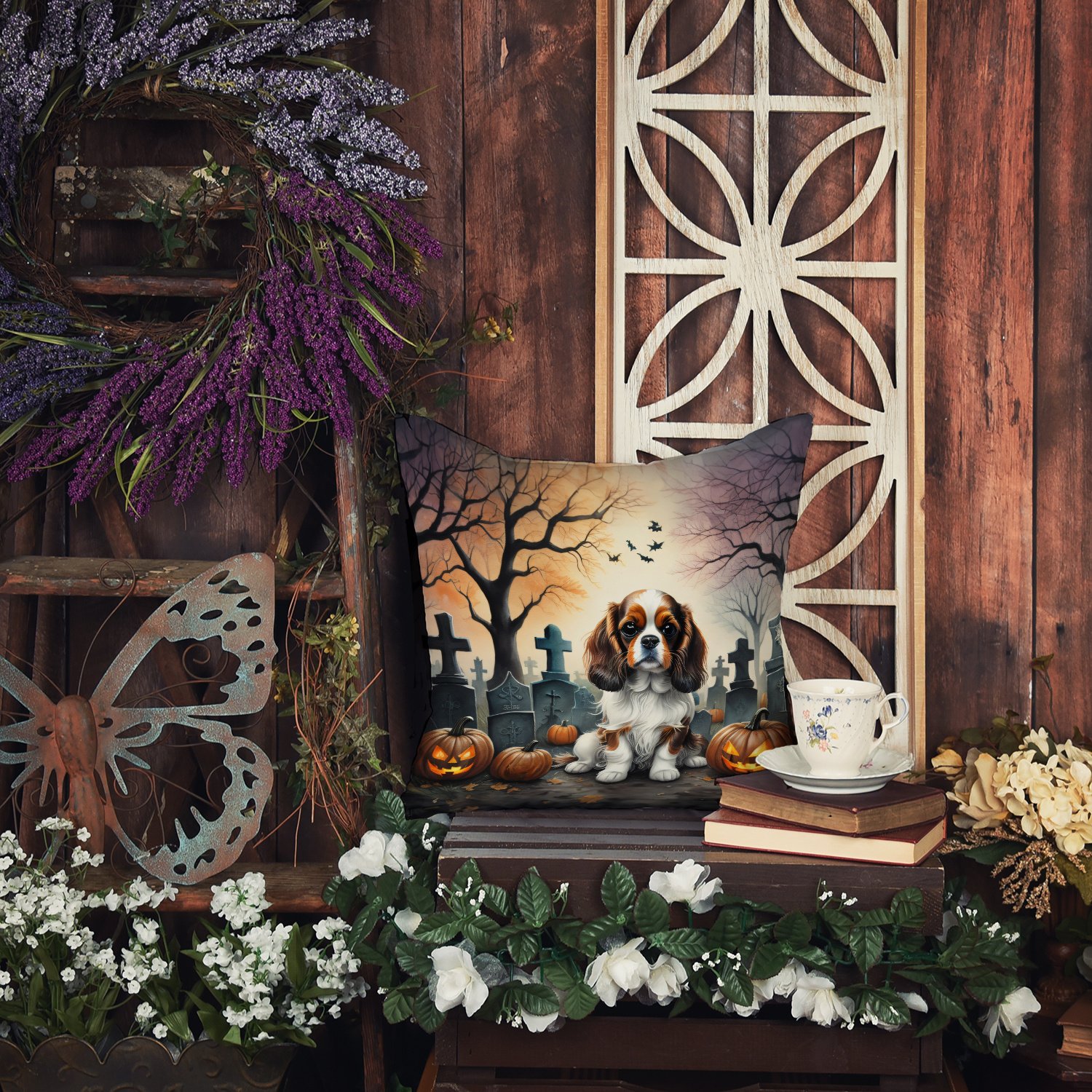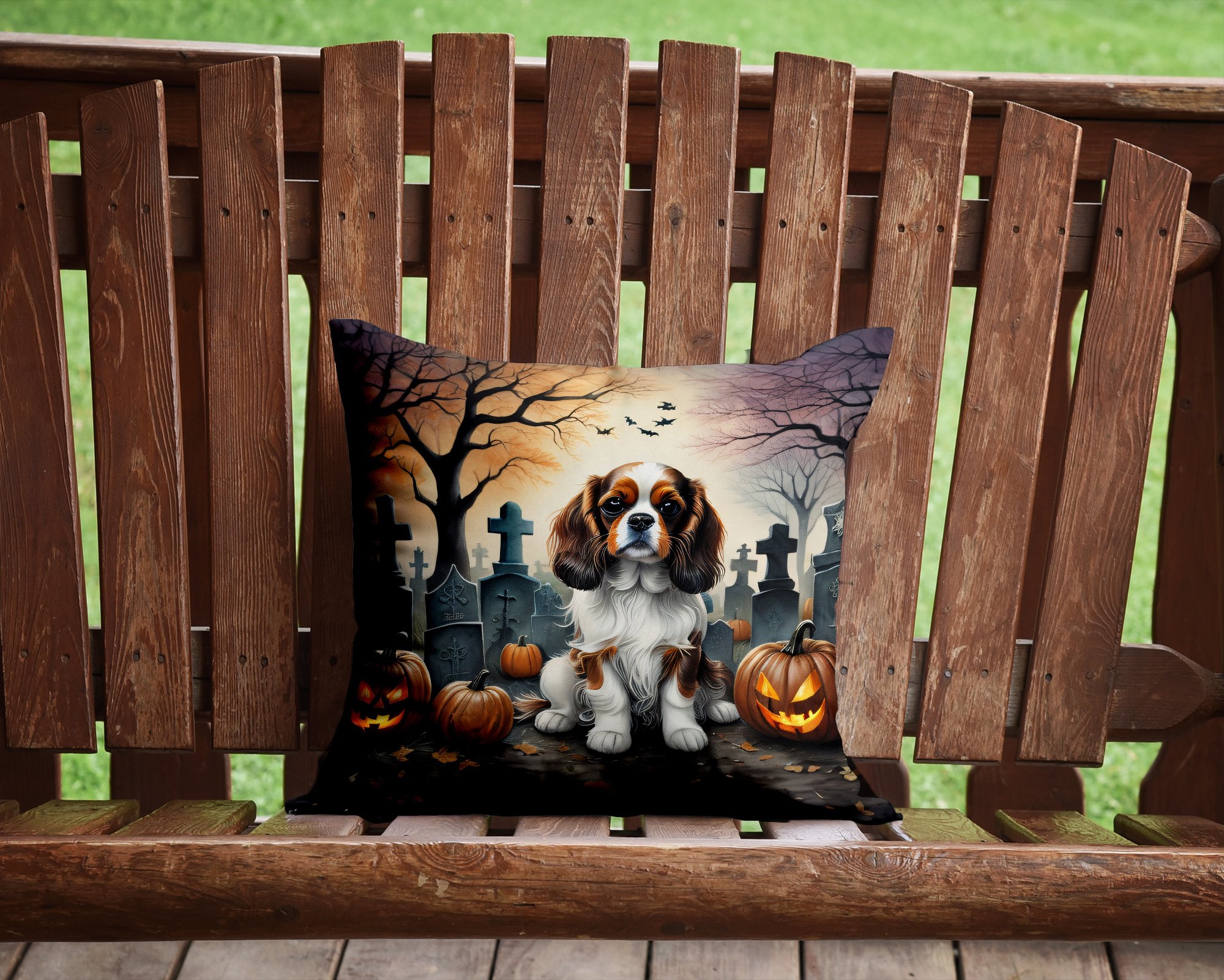 Cavalier Spaniel Spooky Halloween Throw Pillow Machine Washable, Indoor Outdoor Decorative Pillow for Couch, Bed or Patio, 14Hx14W