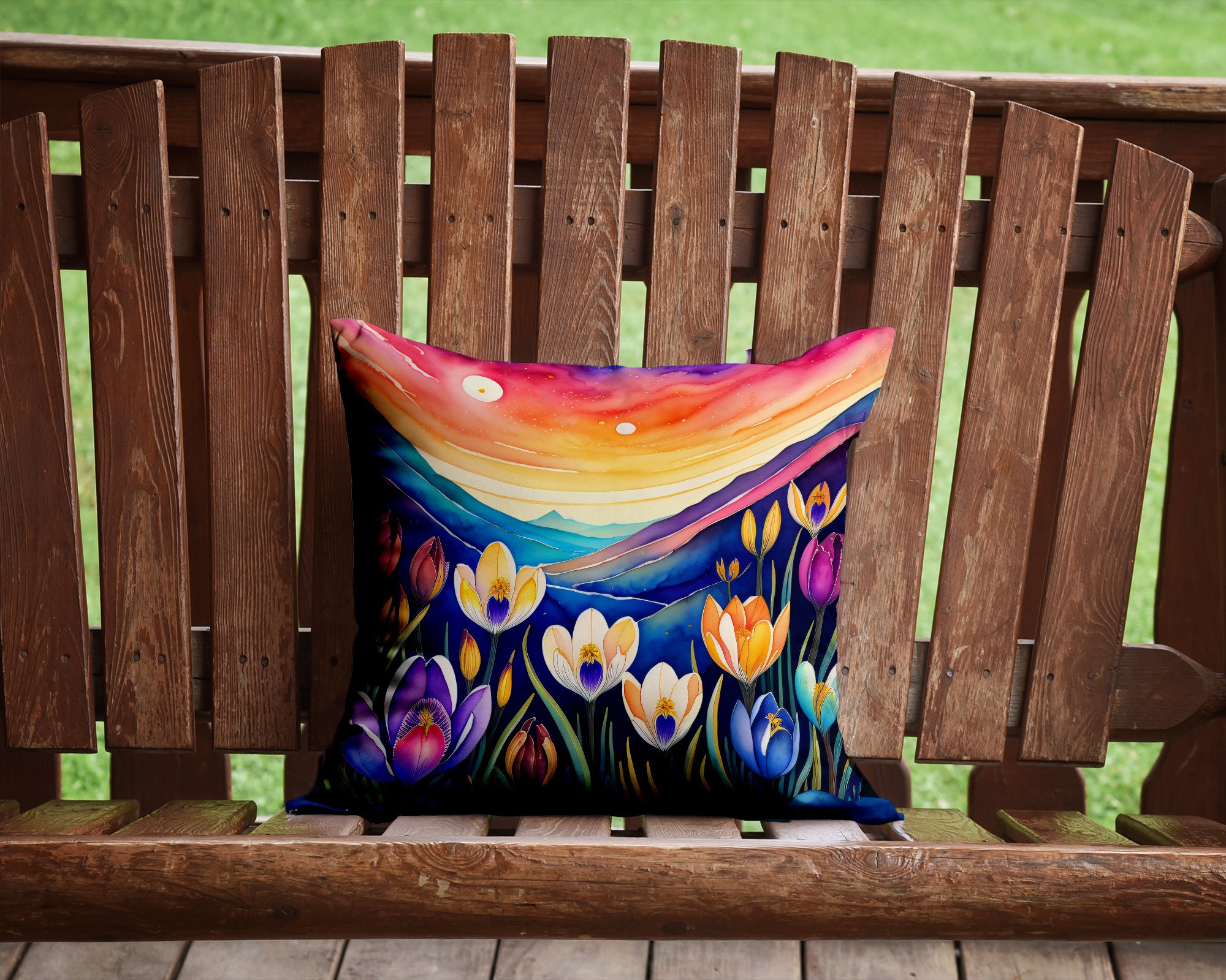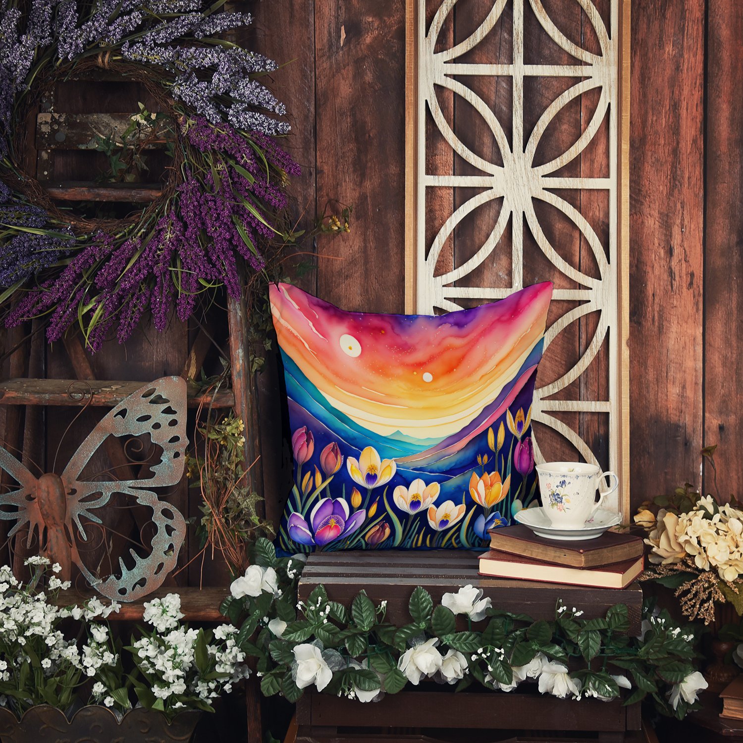 Colorful Crocus Throw Pillow Machine Washable, Indoor Outdoor Decorative Pillow for Couch, Bed or Patio, 14Hx14W