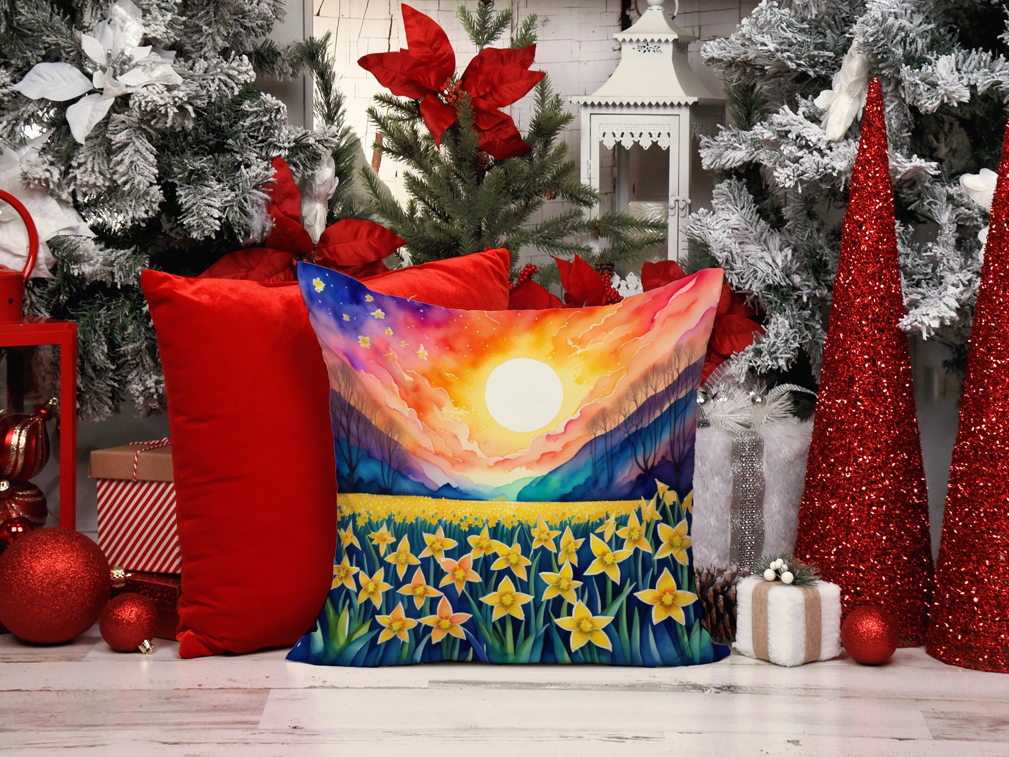 Throw Pillow featuring breed specific Daffodils artwork. Add a touch of vibrancy and comfort to your outdoor seating with Caroline's Treasures Fabric Decorative Pillow. Measuring approximately 14 inches by 14 inches, this outdoor pillow is crafted to elevate the appeal of your patio furniture, infusing it with vivid color and artistic flair. The pillow includes a 100% Polyester Fabric sham filled with a quality pillow form to provide superior comfort. Innovatively made from our brand new material, specifically woven for its water resistance, this pillow is designed for durability. The soft canvas fabric offers versatility in use, fit for your indoor couch or your outdoor patio, porch, or veranda. The fabric is dyed with colorfast dyes built for resilience against weather conditions, ensuring the pillow retains its beauty over time. Constructed by sewing three fabric pieces to create a sham, the polyester insert is then nestled inside to form the pillow, resulting in an overstuffed pillow that maintains its shape. Both the sham and the pillow insert are proudly made in the United States. As the pillows are handcrafted, there may be minor variations in size, further enhancing their unique charm. Experience comfort in style with Caroline's Treasures Fabric Decorative Pillow.