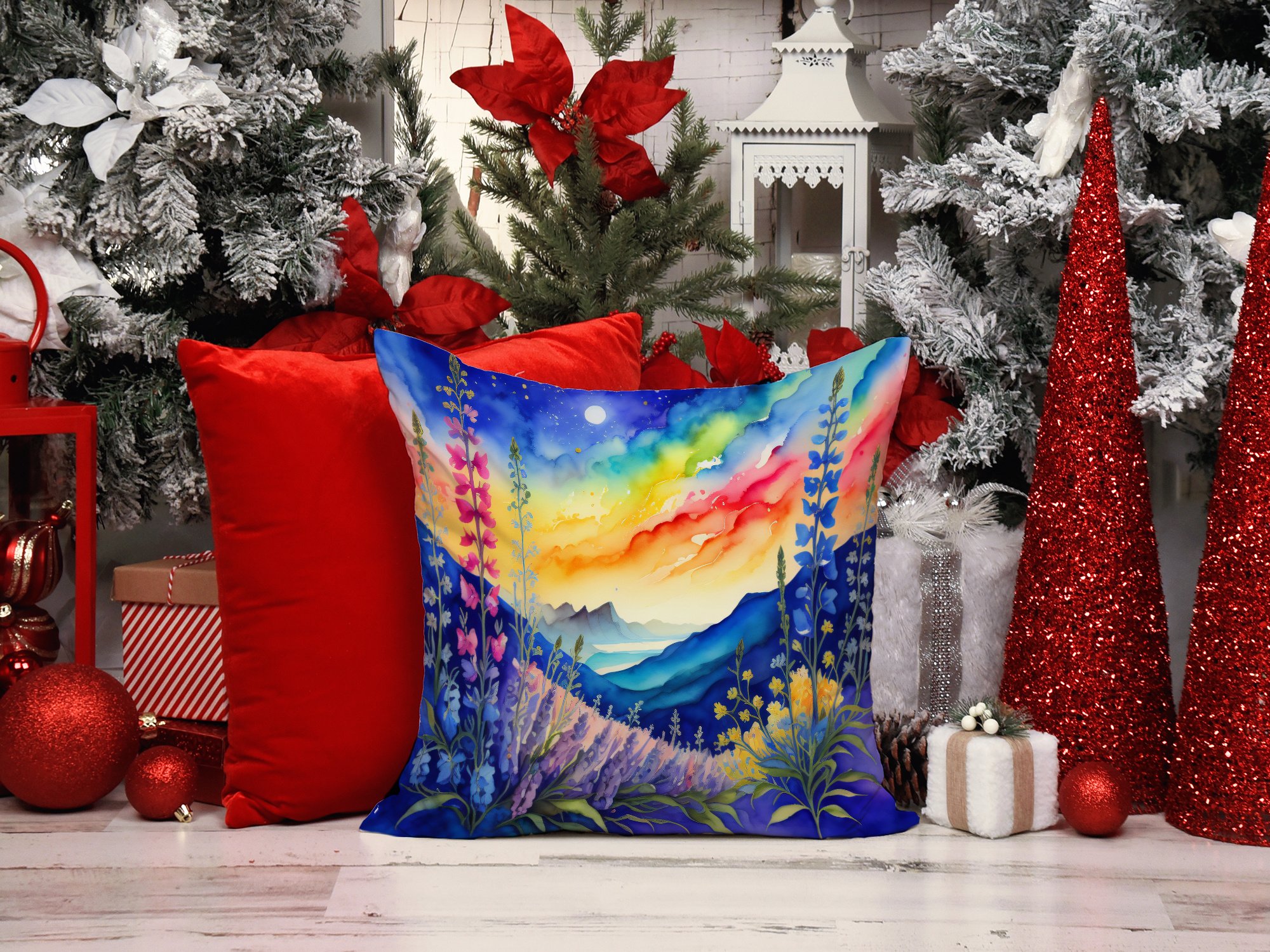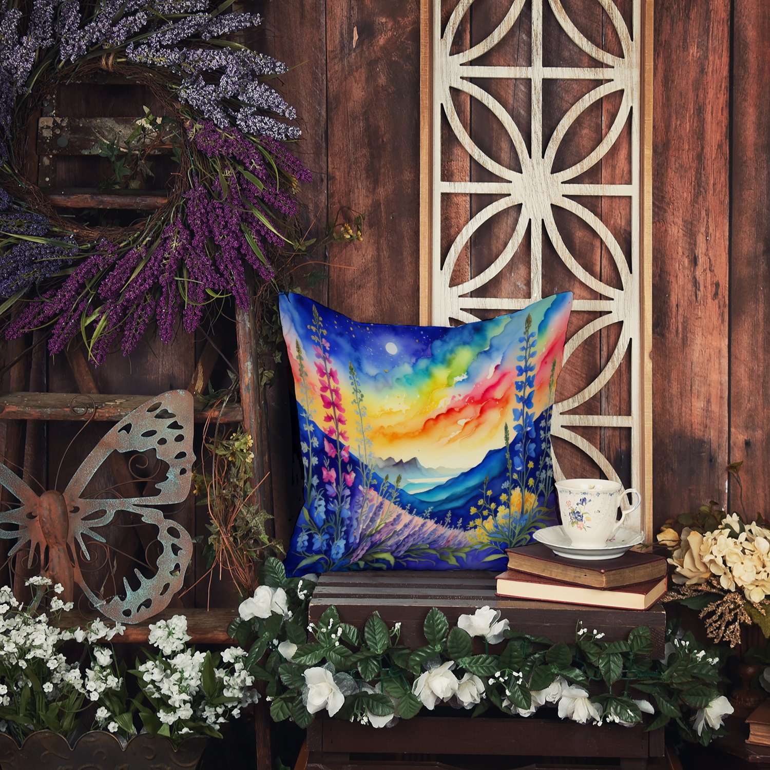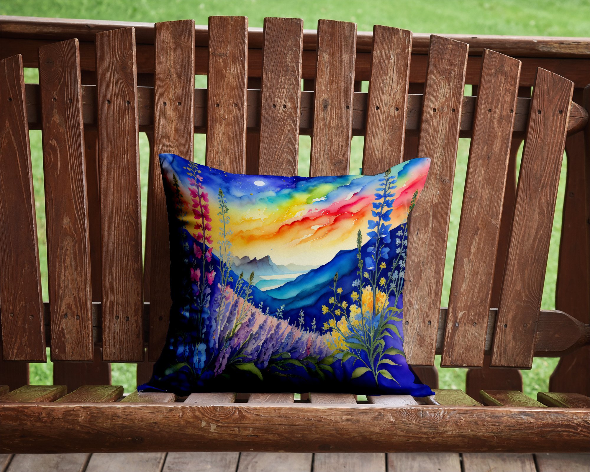Home > Colorful Delphinium Throw Pillow Machine Washable, Indoor Outdoor Decorative Pillow for Couch, Bed or Patio, 14Hx14W