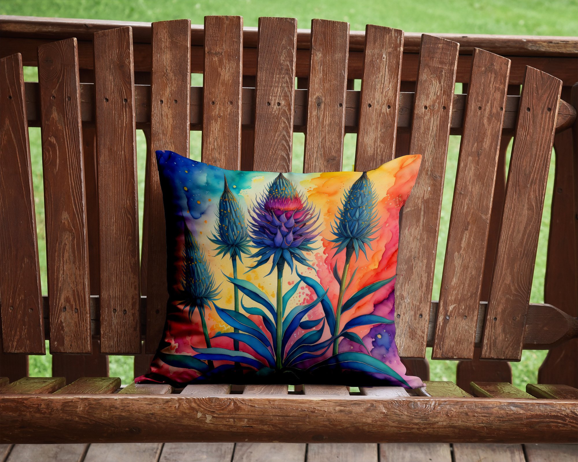 Colorful Eryngium Throw Pillow Machine Washable, Indoor Outdoor Decorative Pillow for Couch, Bed or Patio, 14Hx14W