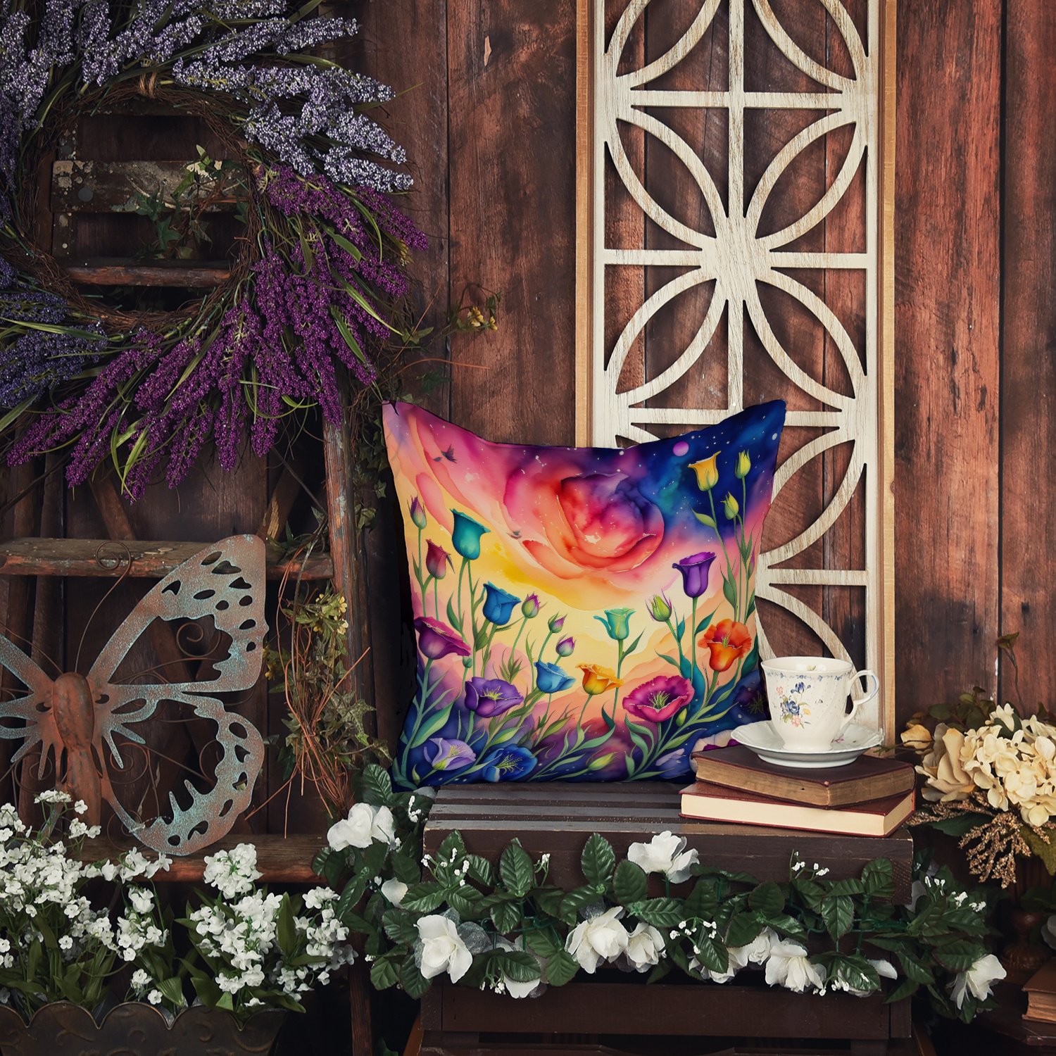 Home > Colorful Lisianthus Throw Pillow Machine Washable, Indoor Outdoor Decorative Pillow for Couch, Bed or Patio, 14Hx14W