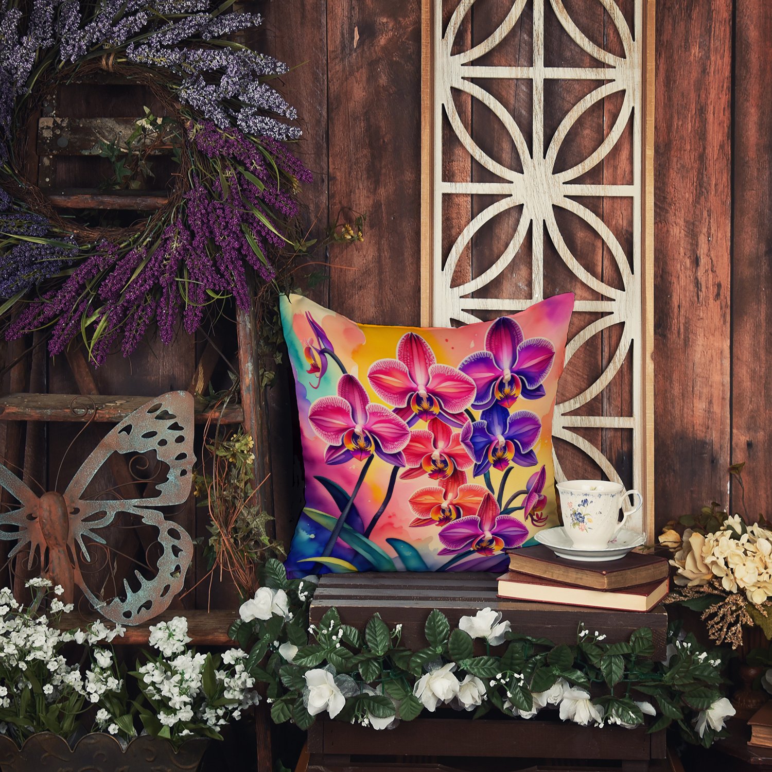 Throw Pillow featuring breed specific Orchids artwork. Add a touch of vibrancy and comfort to your outdoor seating with Caroline's Treasures Fabric Decorative Pillow. Measuring approximately 14 inches by 14 inches, this outdoor pillow is crafted to elevate the appeal of your patio furniture, infusing it with vivid color and artistic flair. The pillow includes a 100% Polyester Fabric sham filled with a quality pillow form to provide superior comfort. Innovatively made from our brand new material, specifically woven for its water resistance, this pillow is designed for durability. The soft canvas fabric offers versatility in use, fit for your indoor couch or your outdoor patio, porch, or veranda. The fabric is dyed with colorfast dyes built for resilience against weather conditions, ensuring the pillow retains its beauty over time. Constructed by sewing three fabric pieces to create a sham, the polyester insert is then nestled inside to form the pillow, resulting in an overstuffed pillow that maintains its shape. Both the sham and the pillow insert are proudly made in the United States. As the pillows are handcrafted, there may be minor variations in size, further enhancing their unique charm. Experience comfort in style with Caroline's Treasures Fabric Decorative Pillow.