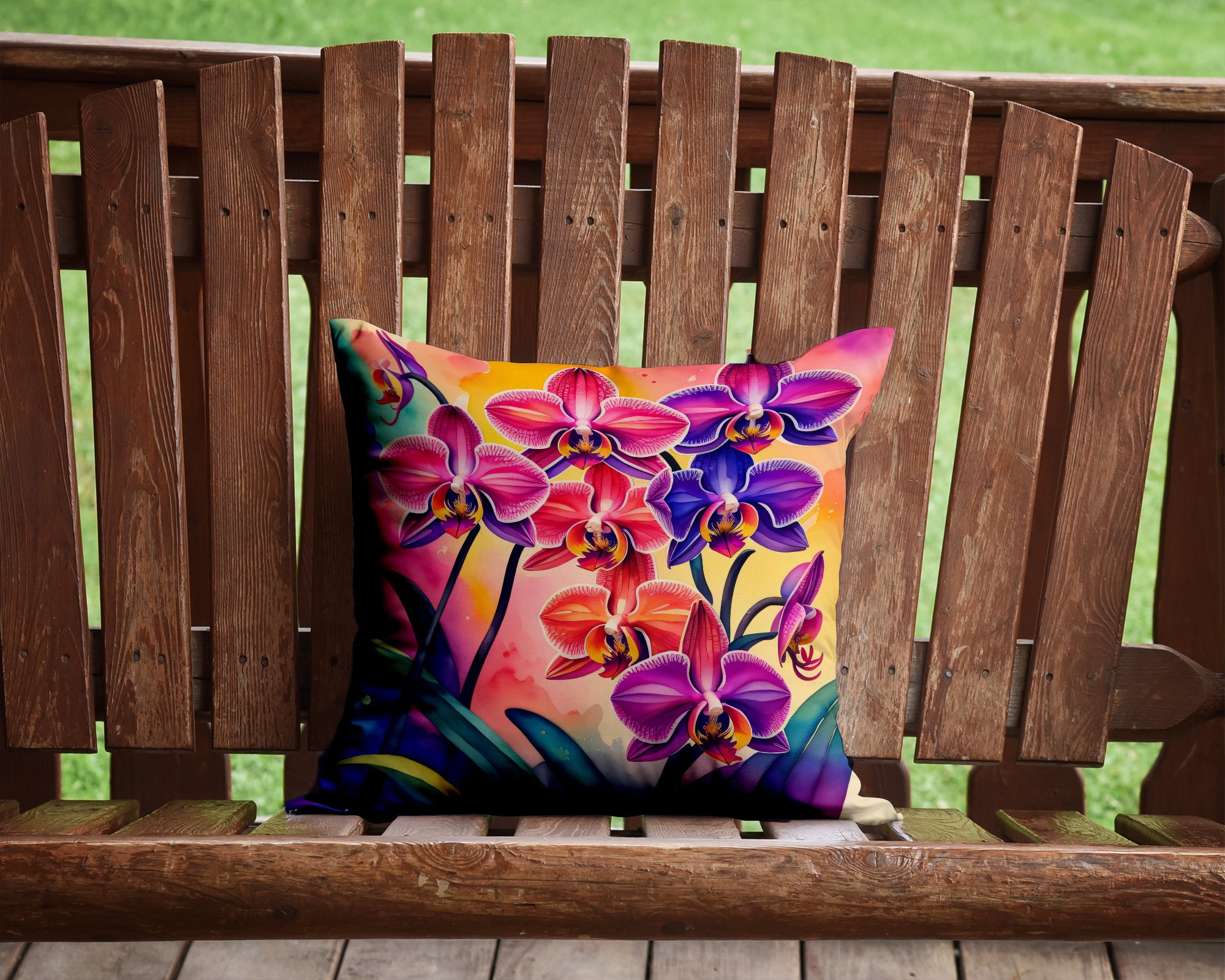 Colorful Orchids Throw Pillow Machine Washable, Indoor Outdoor Decorative Pillow for Couch, Bed or Patio, 14Hx14W
