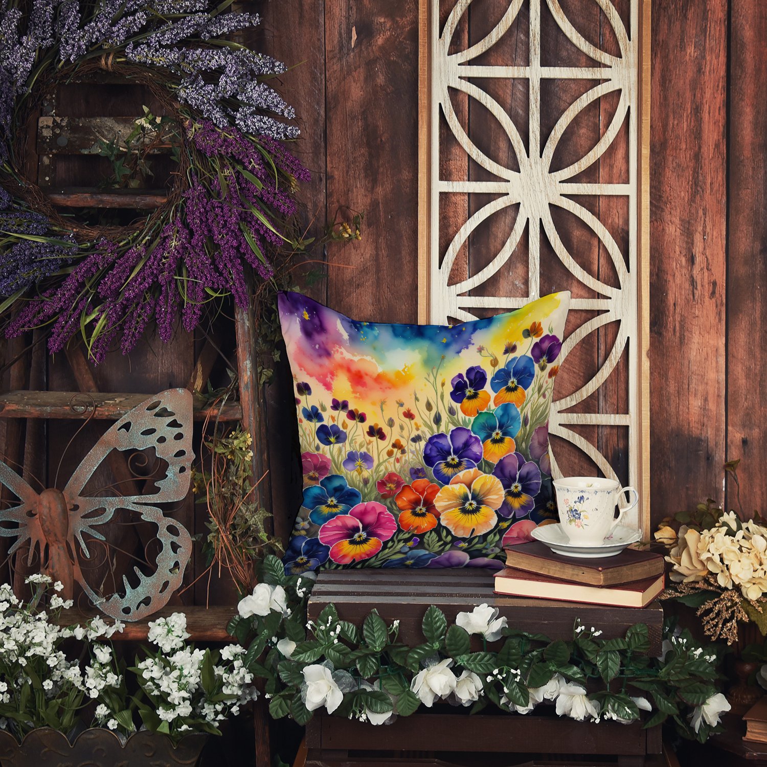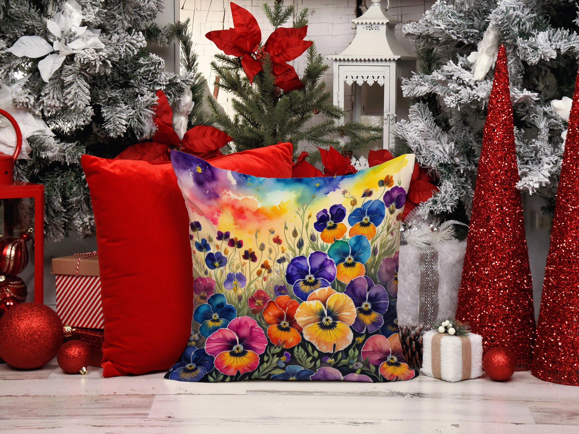Home > Colorful Pansies Throw Pillow Machine Washable, Indoor Outdoor Decorative Pillow for Couch, Bed or Patio, 14Hx14W