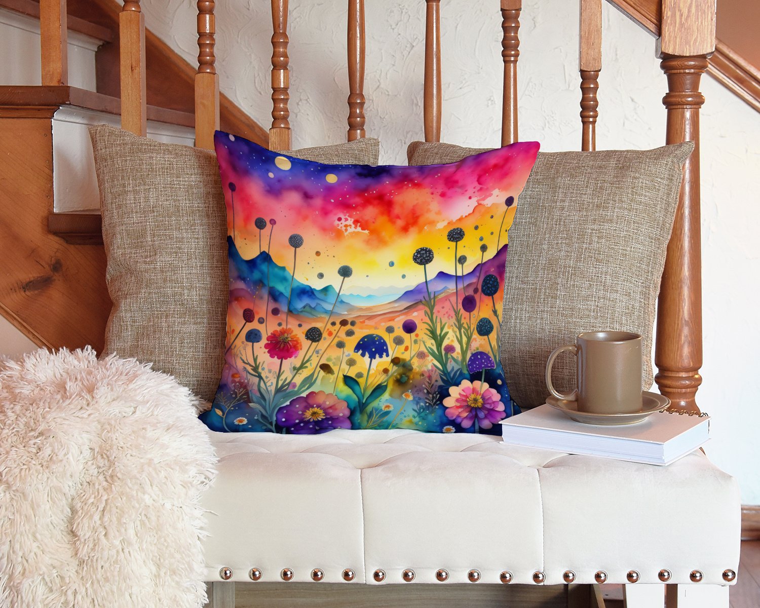 Home > Colorful Scabiosa Throw Pillow Machine Washable, Indoor Outdoor Decorative Pillow for Couch, Bed or Patio, 14Hx14W