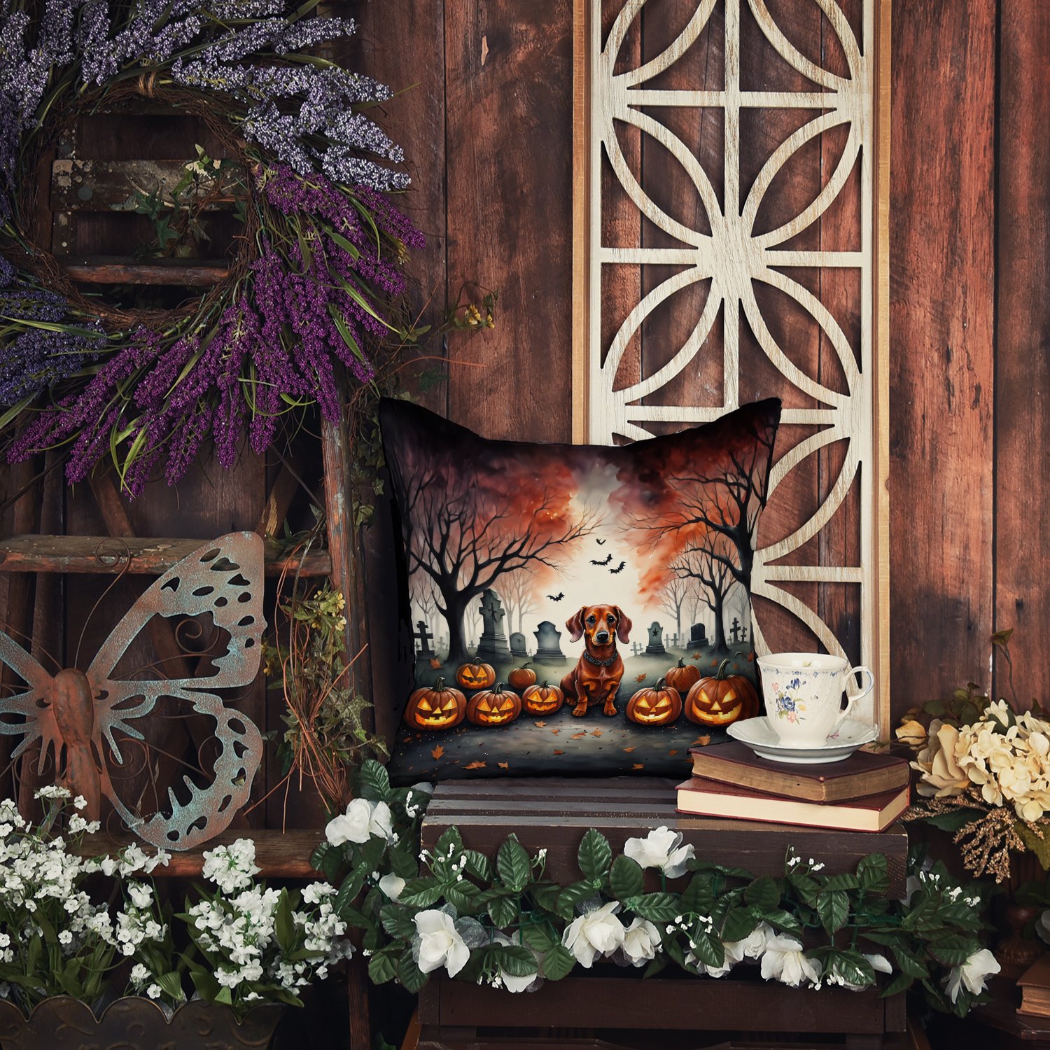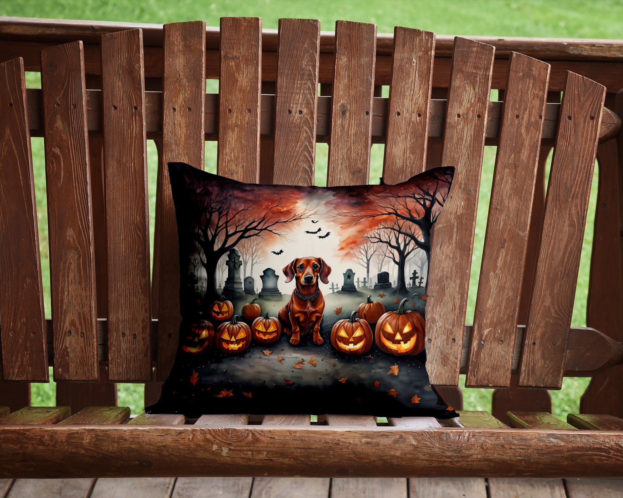 Dachshund Spooky Halloween Throw Pillow Machine Washable, Indoor Outdoor Decorative Pillow for Couch, Bed or Patio, 14Hx14W