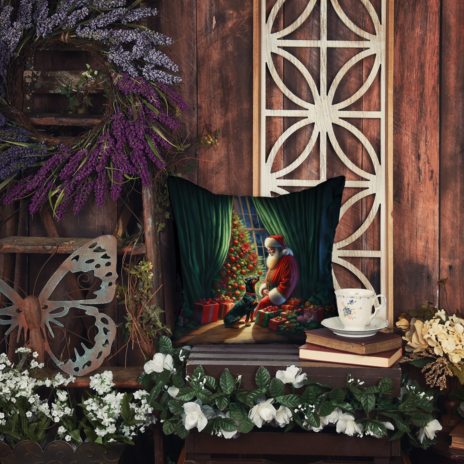 Doberman Pinscher and Santa Claus Throw Pillow Machine Washable, Indoor Outdoor Decorative Pillow for Couch, Bed or Patio, 14Hx14W