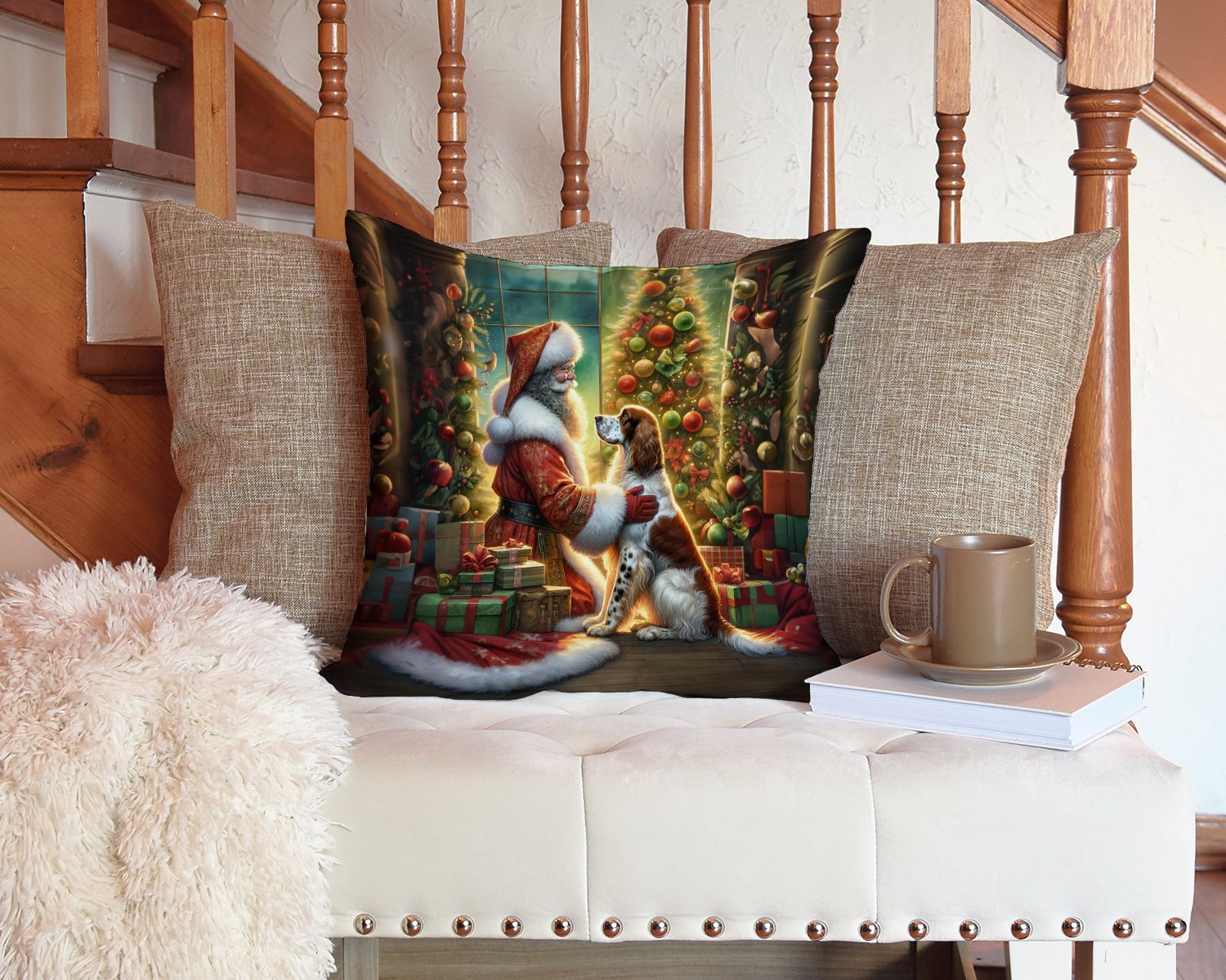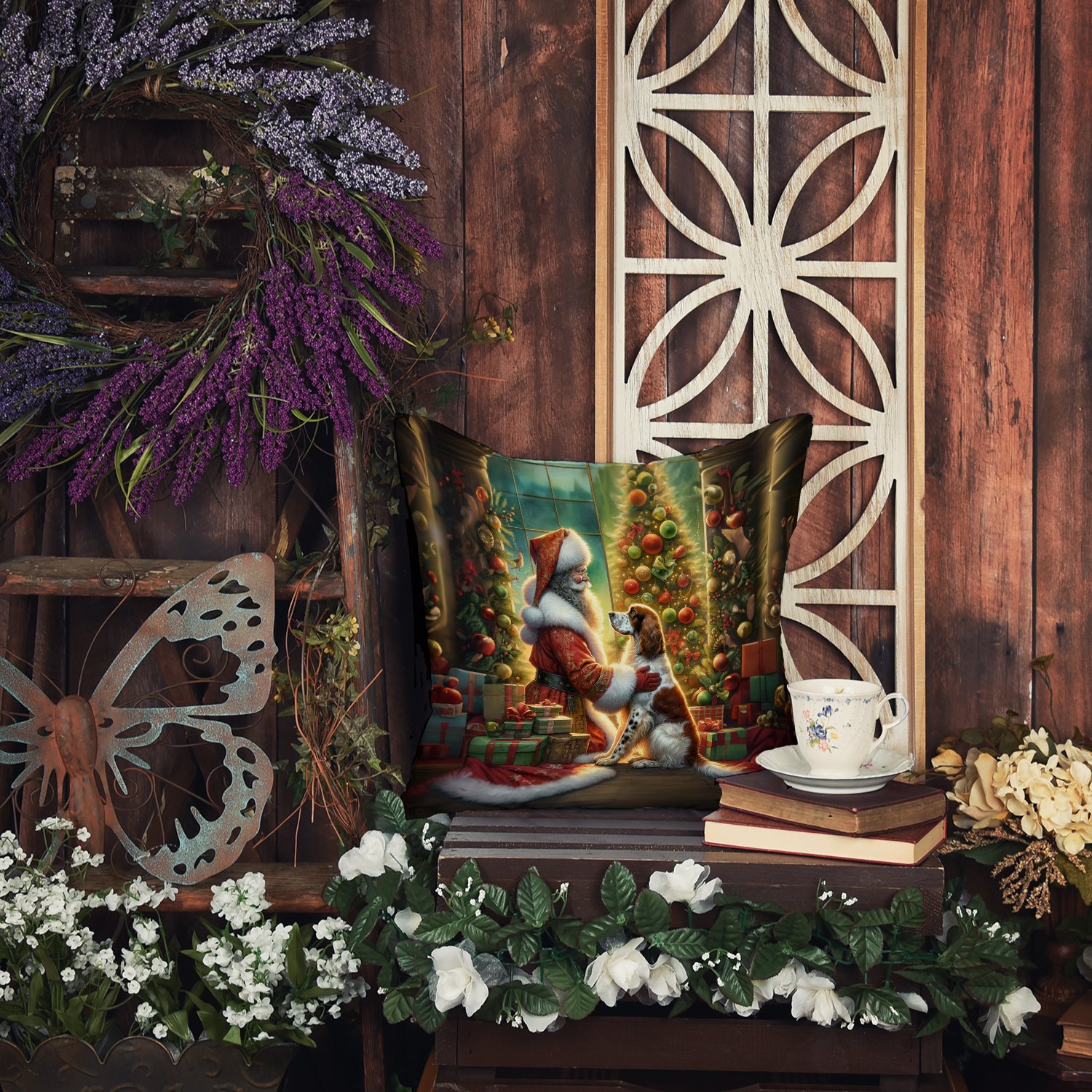 English Setter and Santa Claus Throw Pillow Machine Washable, Indoor Outdoor Decorative Pillow for Couch, Bed or Patio, 14Hx14W