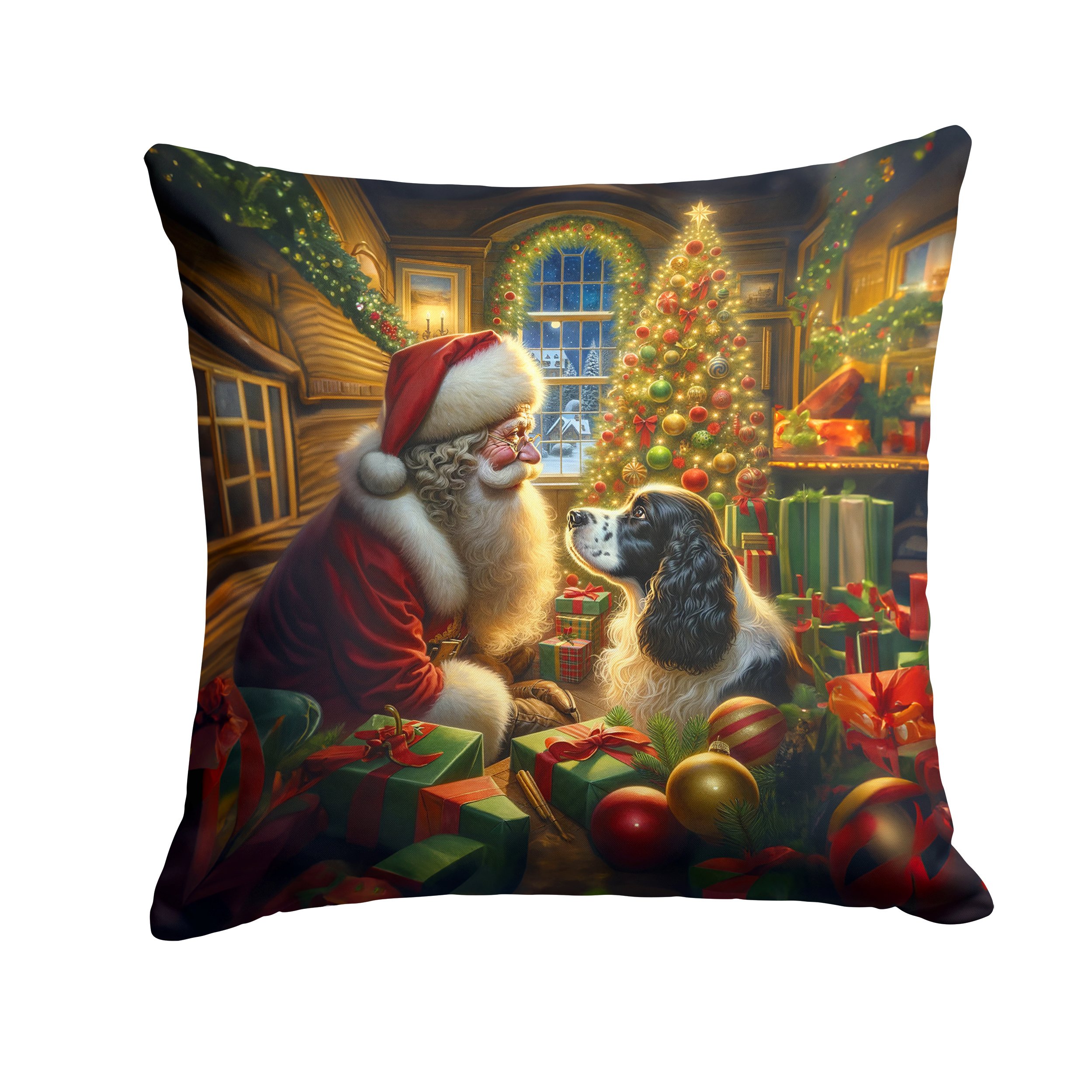 Home > English Springer Spaniel and Santa Claus Throw Pillow Machine Washable, Indoor Outdoor Decorative Pillow for Couch, Bed or Patio, 14Hx14W