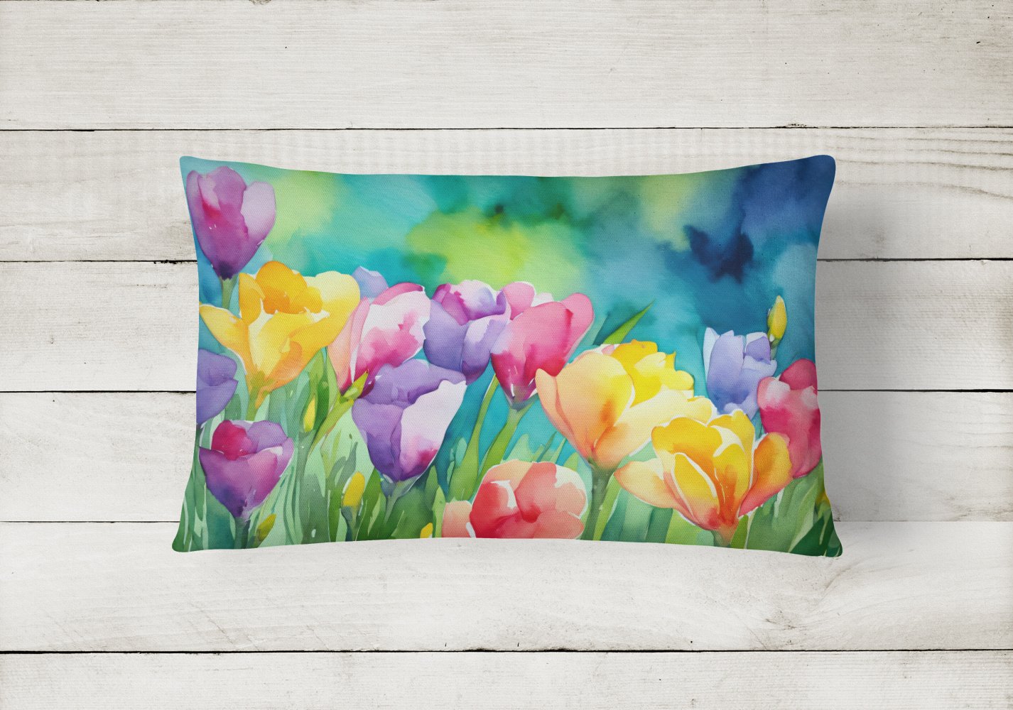 Home > Flowers in Watercolor Throw Pillow Throw Pillow for Indoor Couch Bed Outdoor Patio Washable, Freesias 1566,12Hx16W