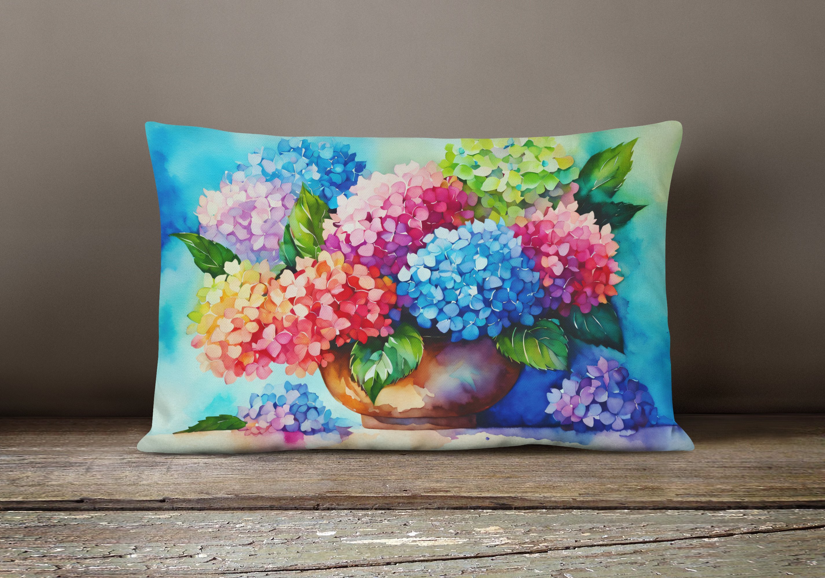 Home > Flowers in Watercolor Throw Pillow Throw Pillow for Indoor Couch Bed Outdoor Patio Washable, Hydrangeas 1576,12Hx16W