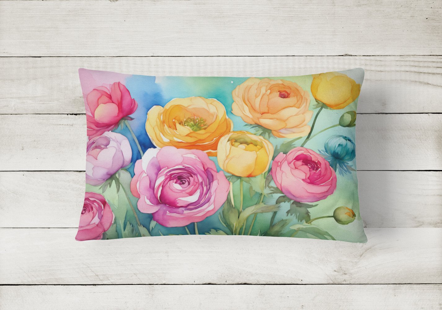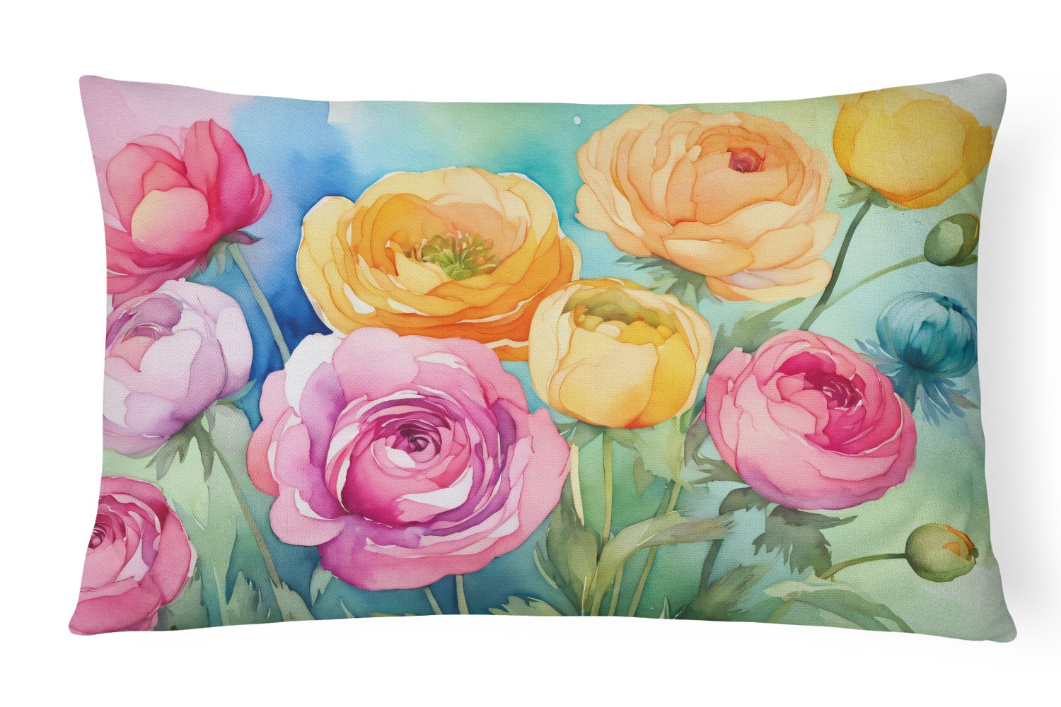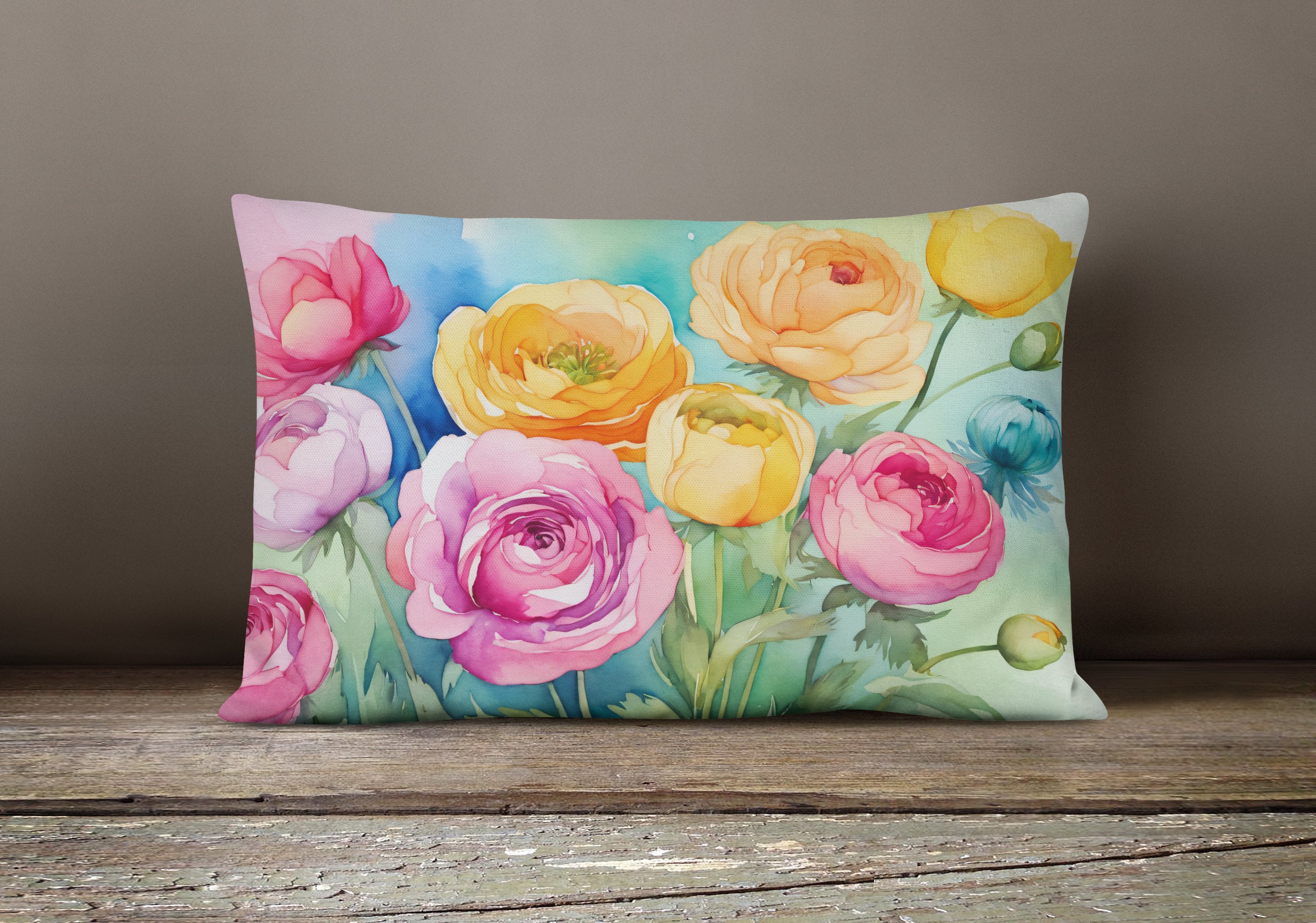 Home > Flowers in Watercolor Throw Pillow Throw Pillow for Indoor Couch Bed Outdoor Patio Washable, Ranunculus 1603,12Hx16W