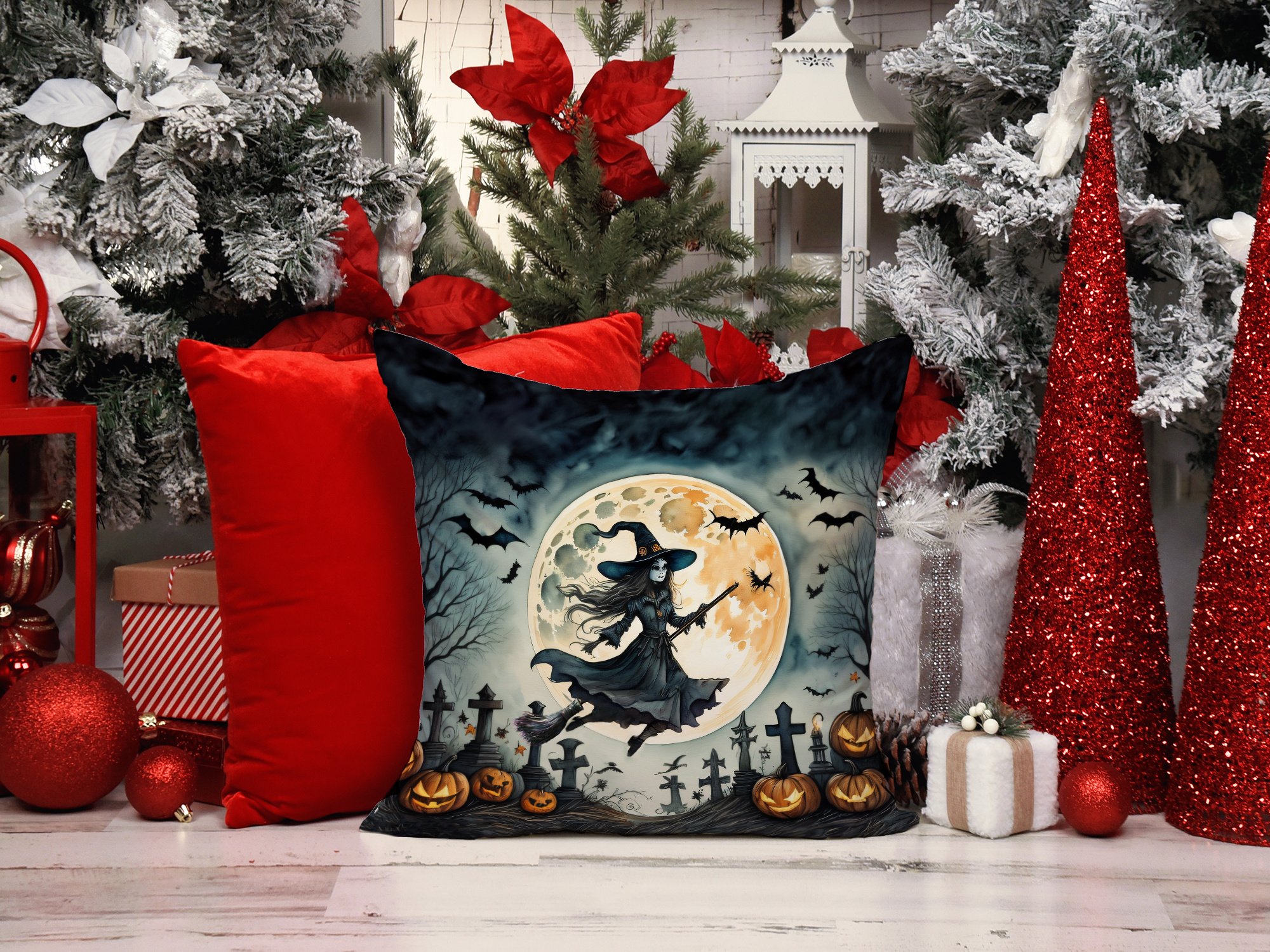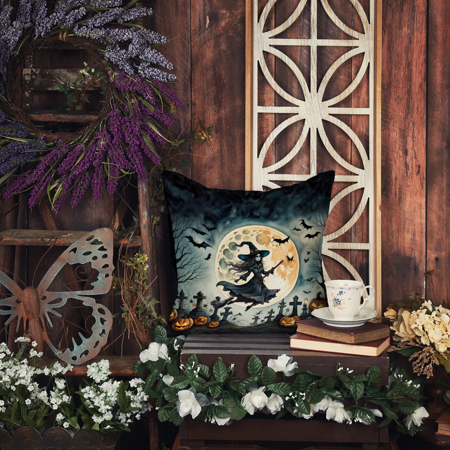 Home > Flying Witch Spooky Halloween Throw Pillow Machine Washable, Indoor Outdoor Decorative Pillow for Couch, Bed or Patio, 14Hx14W