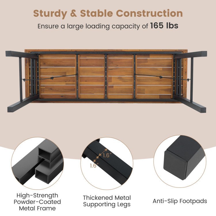 3.Sturdy and Stable Construction: The acacia wood dining table is supported by a high-strength powder-coated metal frame, ensuring good rust resistance and a large loading capacity of 165 lbs. And there exist anti-slip footpads on the bottom for enhancing stability.