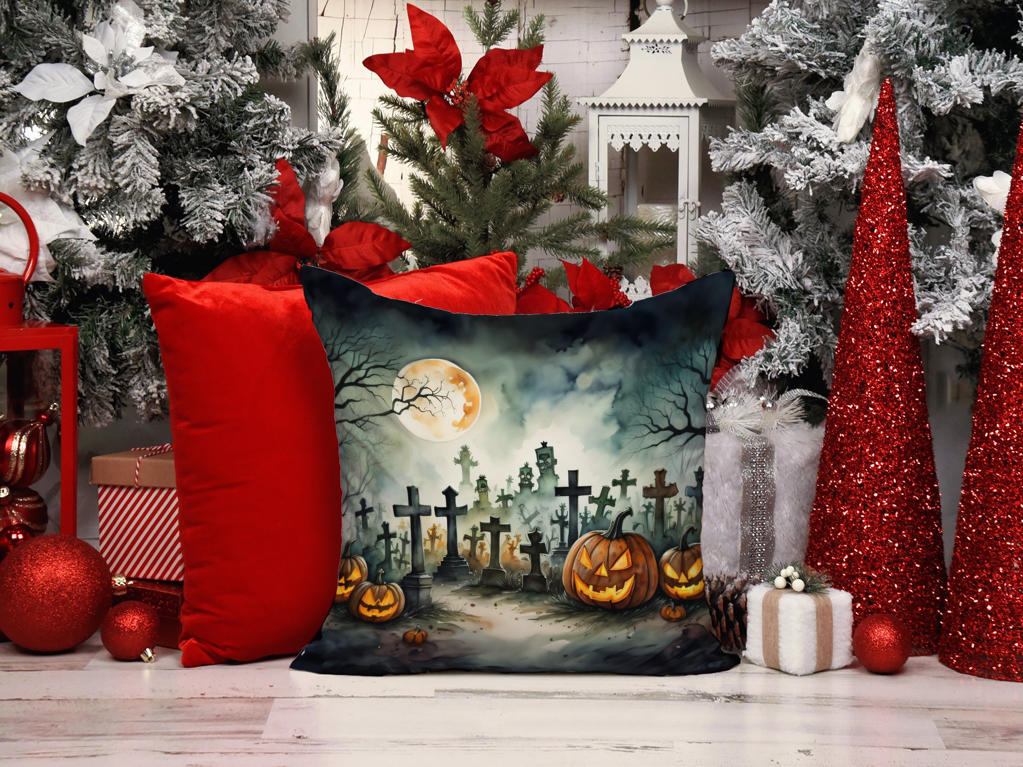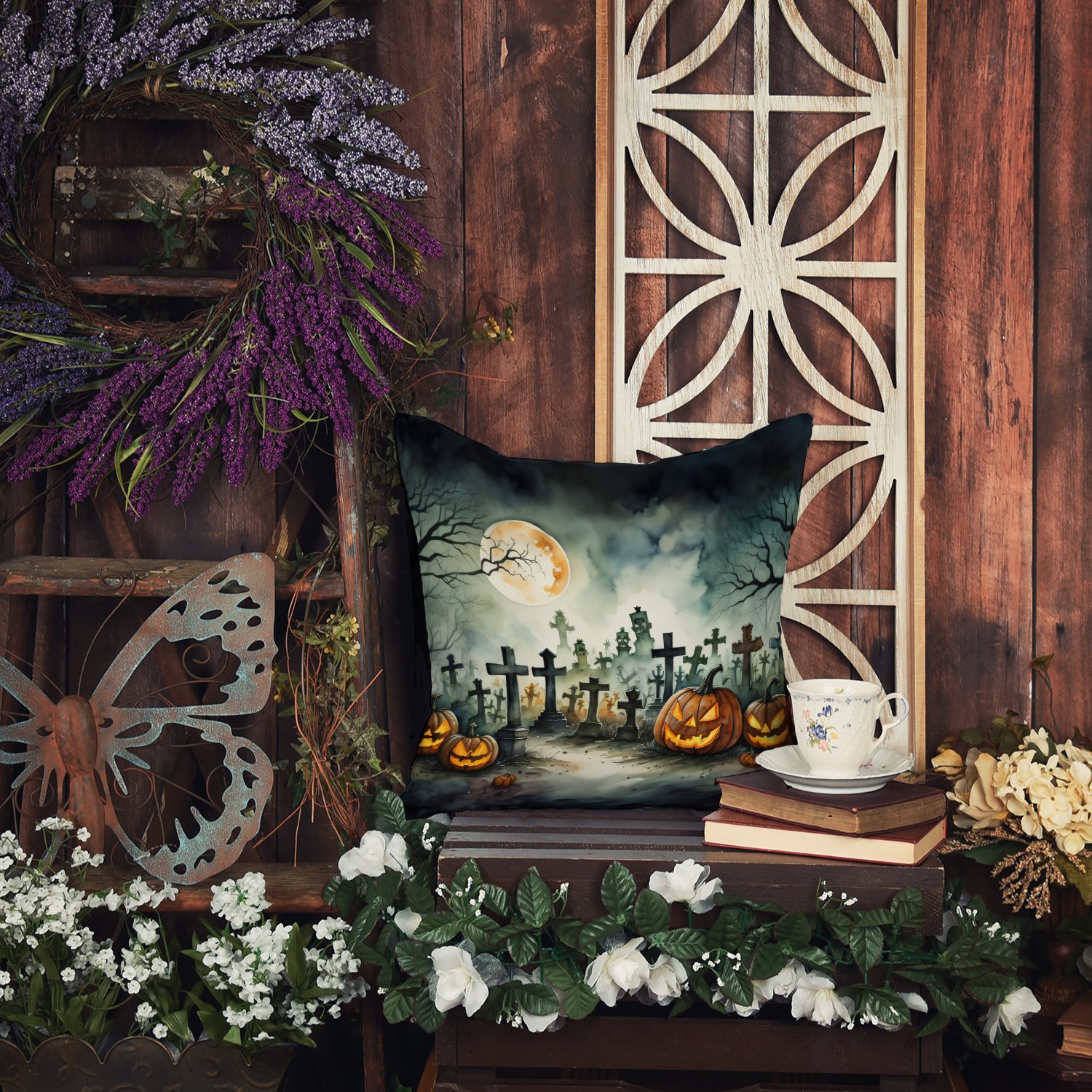 Home > Graveyard Spooky Halloween Throw Pillow Machine Washable, Indoor Outdoor Decorative Pillow for Couch, Bed or Patio, 14Hx14W