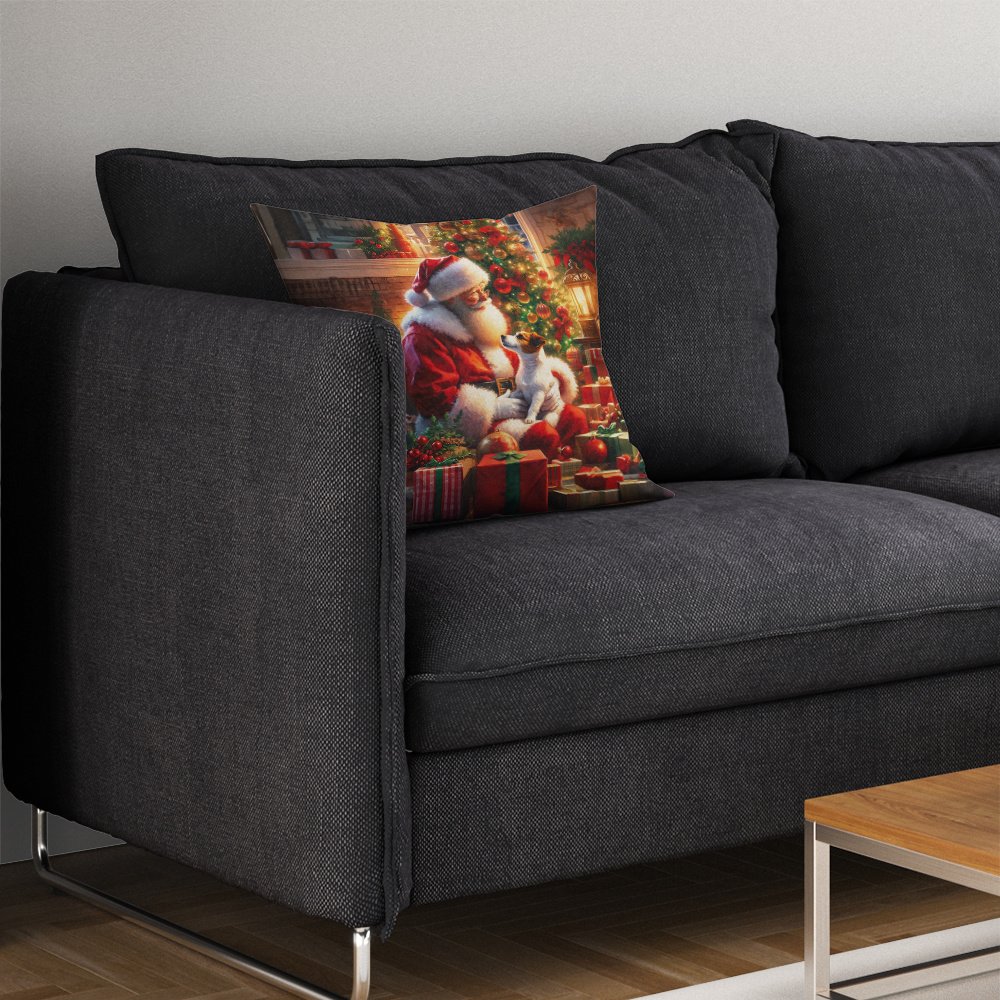 Jack Russell Terrier and Santa Claus Throw Pillow Machine Washable, Indoor Outdoor Decorative Pillow for Couch, Bed or Patio, 14Hx14W