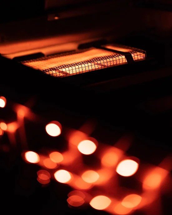 Underneath the cooking grids, we use a commercial grade ceramic searing briquette system. These briquettes provide even heating throughout the entire surface of the grill, and they do an amazing job at distributing the heat… They do not break down, and they prevent flare ups.