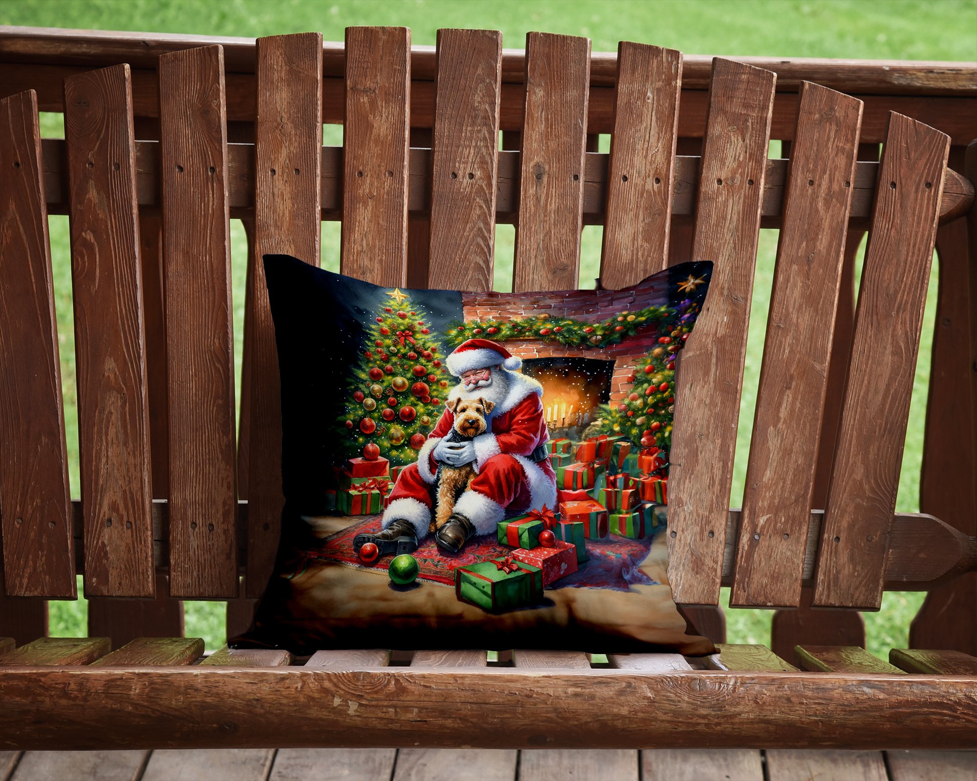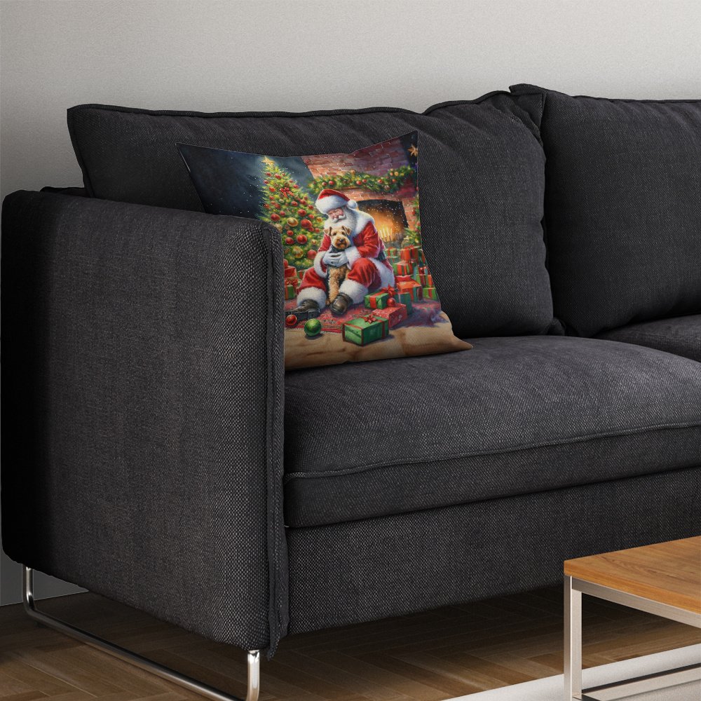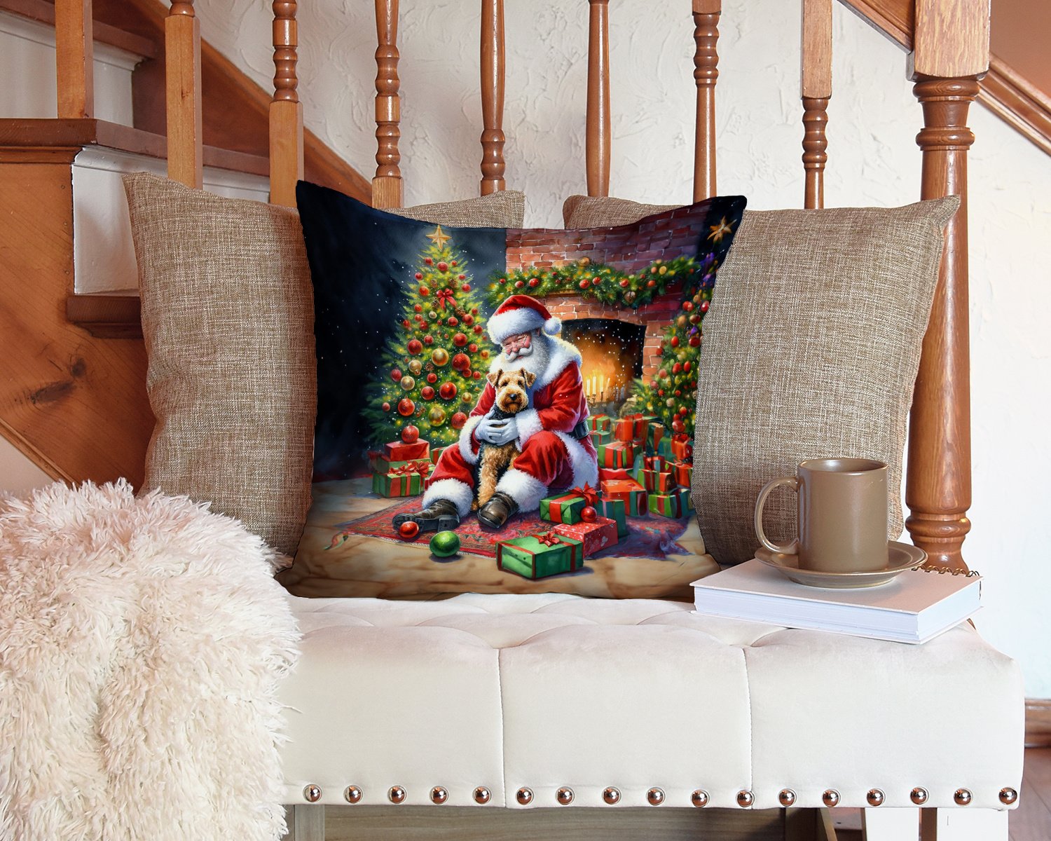 Lakeland Terrier and Santa Claus Throw Pillow Machine Washable, Indoor Outdoor Decorative Pillow for Couch, Bed or Patio, 14Hx14W