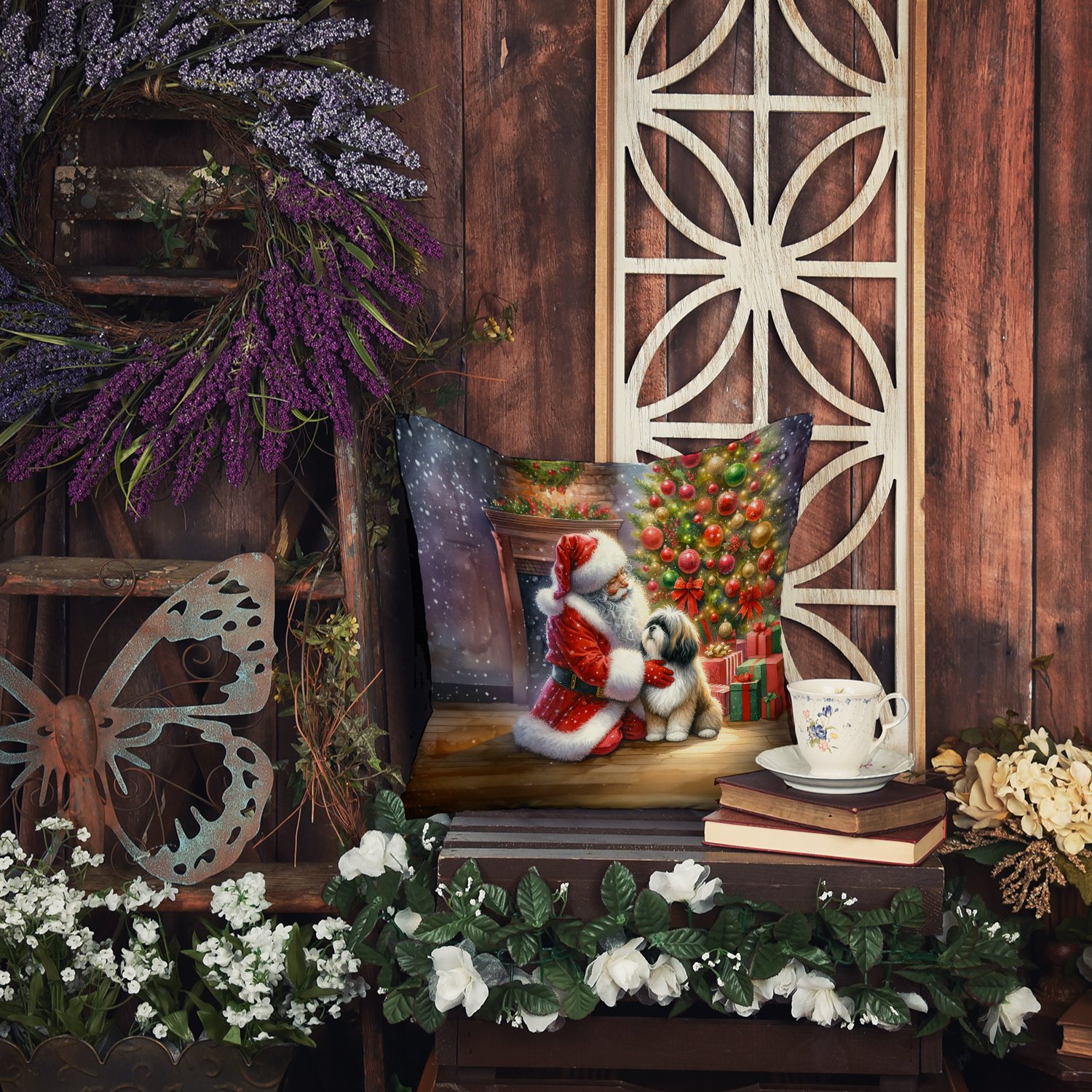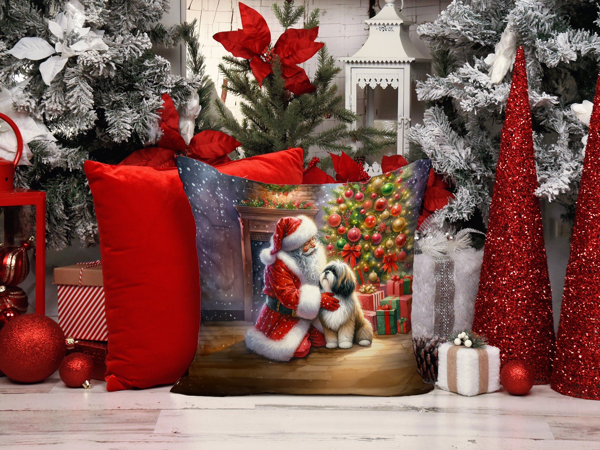 Lhasa Apso and Santa Claus Throw Pillow Machine Washable, Indoor Outdoor Decorative Pillow for Couch, Bed or Patio, 14Hx14W