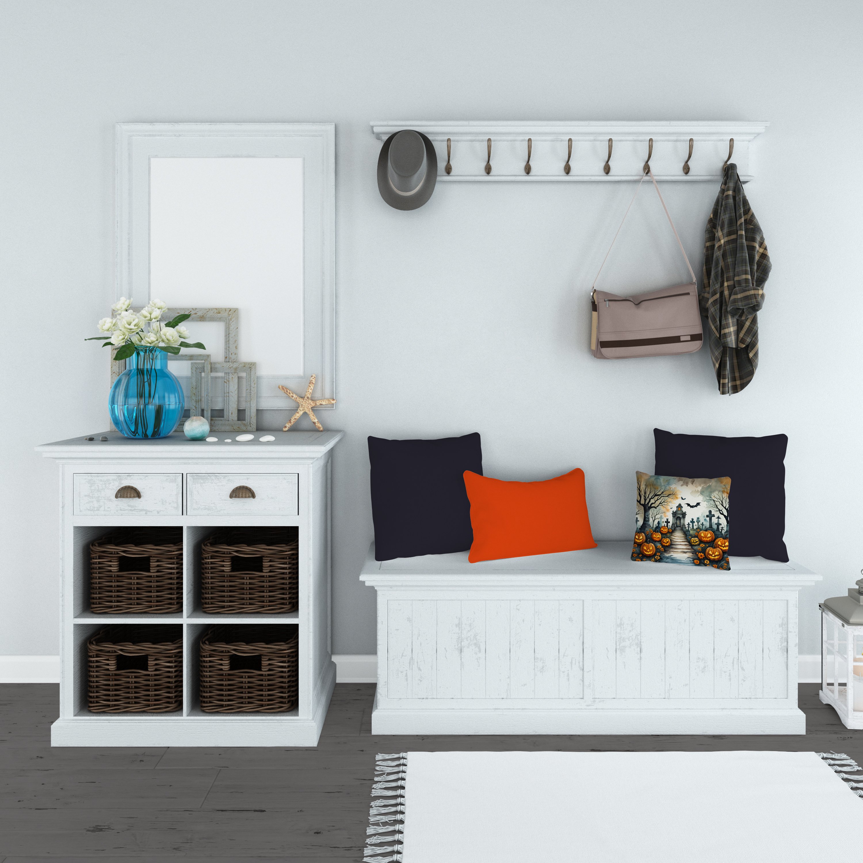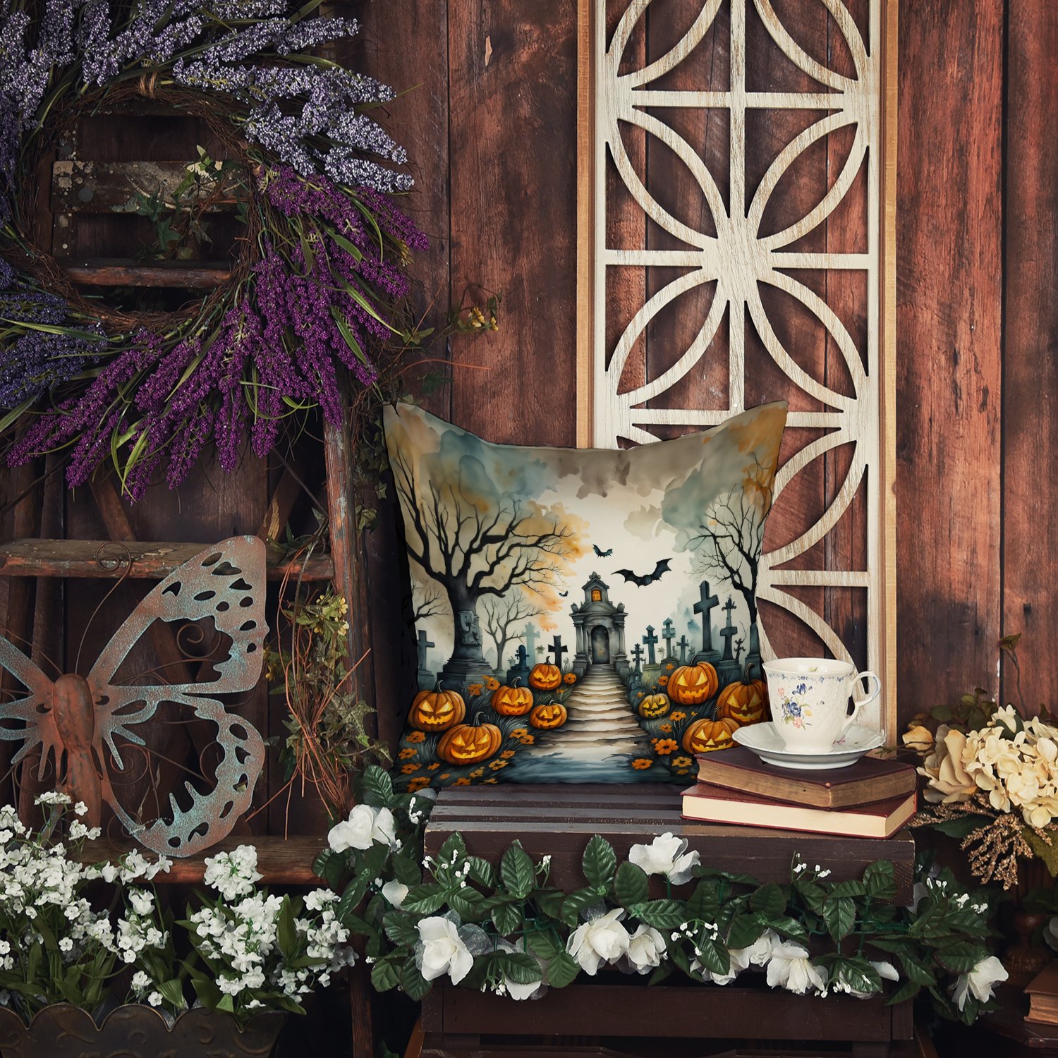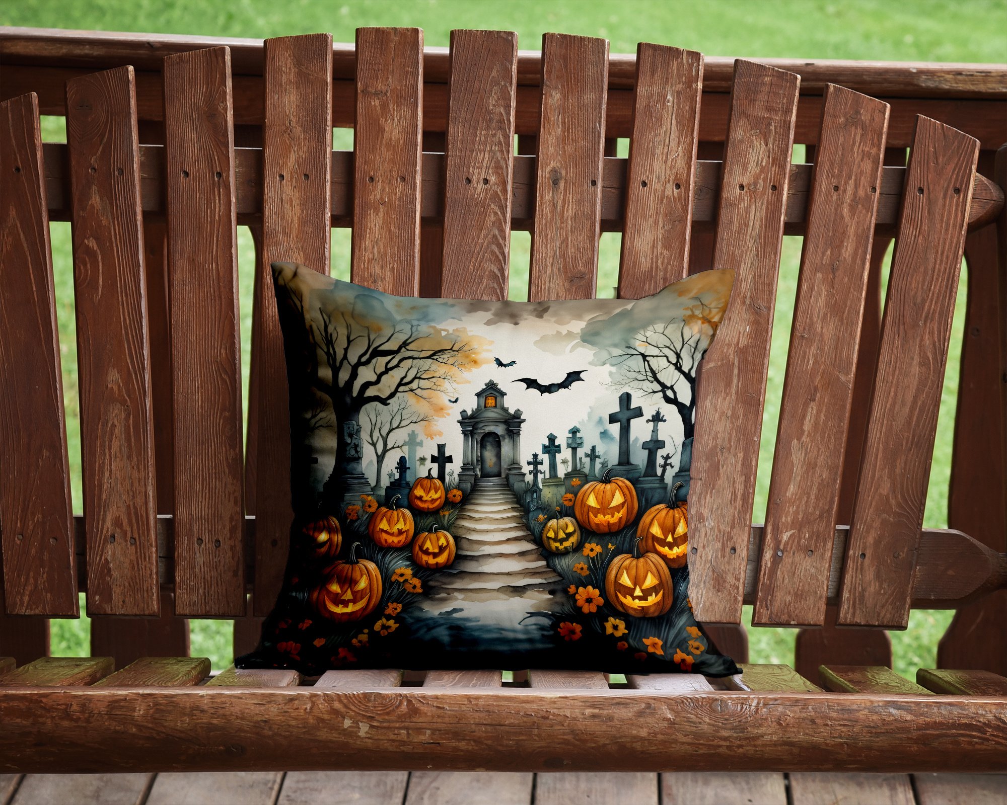 Celebrate Halloween with this Halloween Pillow. Add a touch of vibrancy and comfort to your outdoor seating with Caroline's Treasures Fabric Decorative Pillow. Measuring approximately 14 inches by 14 inches, this outdoor pillow is crafted to elevate the appeal of your patio furniture, infusing it with vivid color and artistic flair. The pillow includes a 100% Polyester Fabric sham filled with a quality pillow form to provide superior comfort. Innovatively made from our brand new material, specifically woven for its water resistance, this pillow is designed for durability. The soft canvas fabric offers versatility in use, fit for your indoor couch or your outdoor patio, porch, or veranda. The fabric is dyed with colorfast dyes built for resilience against weather conditions, ensuring the pillow retains its beauty over time. Constructed by sewing three fabric pieces to create a sham, the polyester insert is then nestled inside to form the pillow, resulting in an overstuffed pillow that maintains its shape. Both the sham and the pillow insert are proudly made in the United States. As the pillows are handcrafted, there may be minor variations in size, further enhancing their unique charm. Experience comfort in style with Caroline's Treasures Fabric Decorative Pillow.