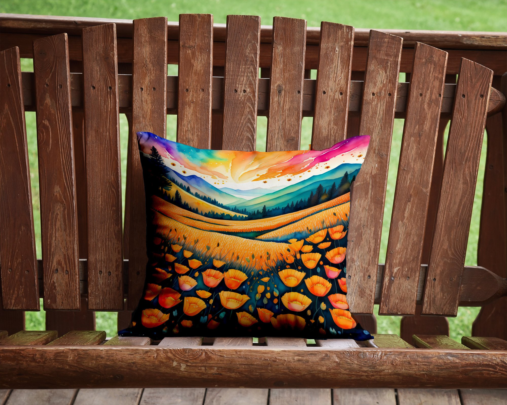 NEW Colorful California poppies Throw Pillow Machine Washable, Indoor Outdoor Decorative Pillow for Couch, Bed or Patio, 14Hx14W