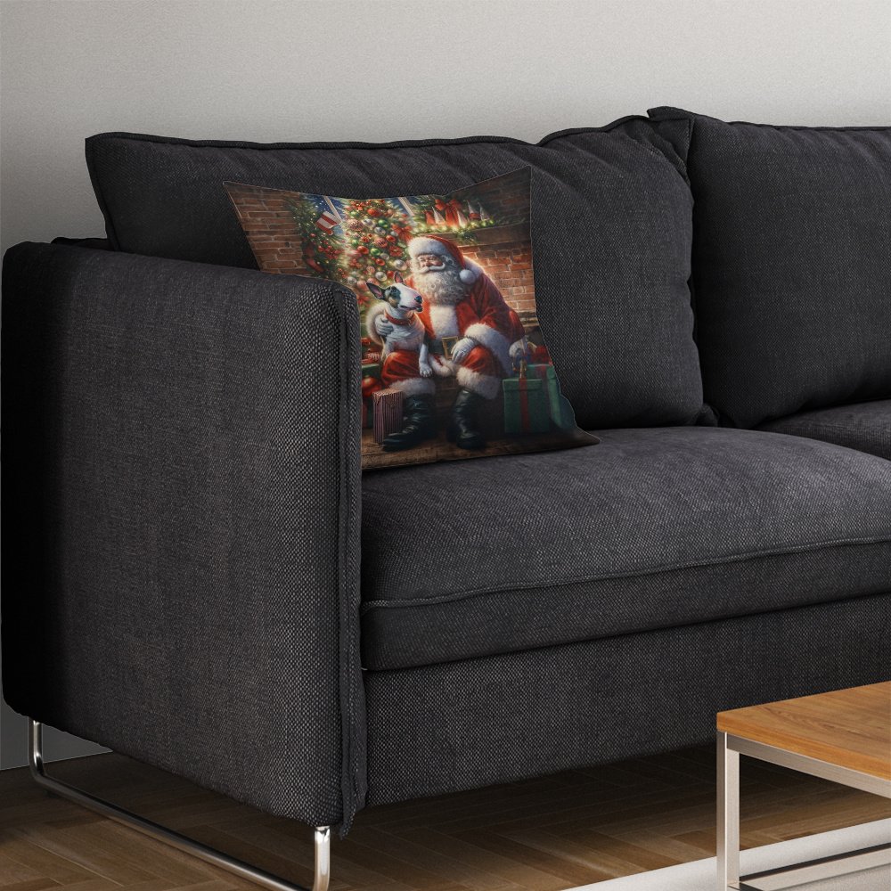Home > NEW English Bull Terrier and Santa Claus Throw Pillow Machine Washable, Indoor Outdoor Decorative Pillow for Couch, Bed or Patio, 14Hx14W
