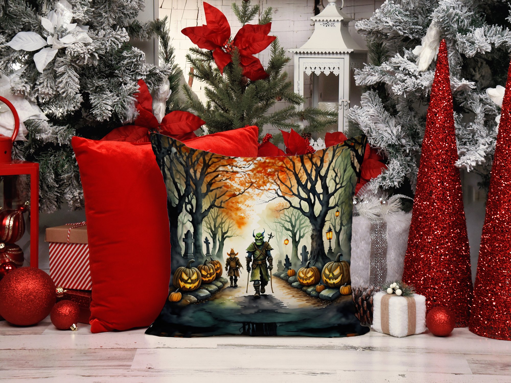 Orcs Spooky Halloween Throw Pillow Machine Washable, Indoor Outdoor Decorative Pillow for Couch, Bed or Patio, 14Hx14W