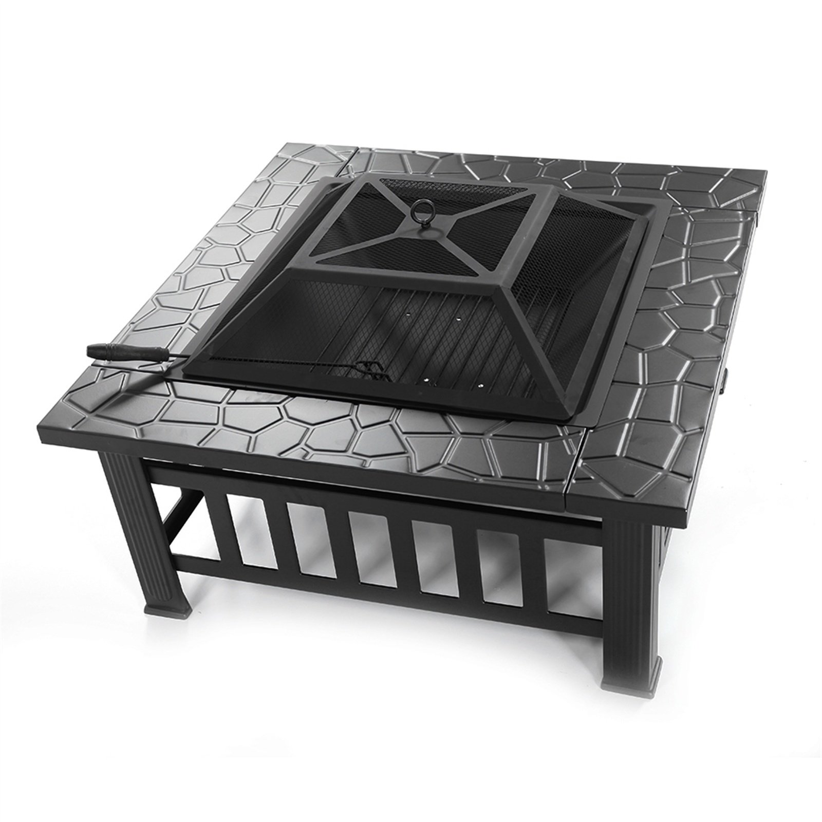 This outdoor square fire pit is constructed of heavy duty iron mesh and frame. The garden stove brazier is built in square shape for stability. This square fire pit features with mesh lid to prevent burning embers blowing and comes with a poker to stoke fire and remove the mesh lid safely. Its scientific and reasonable structure is designed by professional engineer. This is not only a practical item for home use, but also a good landscape for garden or courtyard. With fine workmanship on the basis of high-class materials, this fire bowl is in good quality and reliability. Also, included accessories are provided for convenient operation. With this fire bowl, you will get warm even in the chilly winter days. No more hesitation!Features:1. High quality and in a good condition2. High-class metal material, exquisite treatment, stylish and practical3. Act as a heater in the cold days4. Small size, lightweight for easy operation5. It comes with necessary accessories for convenienceSpecifications:1. Material: Metal2. Color: Black3. Weight: 25.35 lbs / 11.5 kg4. Overall Dimensions: (32 x 32 x 17)" / (82 x 82 x 44)cm (L x W x H)5. Bowl Dimensions: (21 x 21 x 5)" / (54 x 54 x 13)cm (L x W x H)Package includes:1 x Metal Fire Pit1 x Mesh Screen Lid1 x Poker1 x Instruction