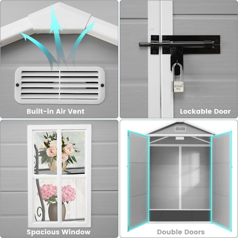 Home > Resin Shed 6x4.4FT,Plastic Shed,Outdoor Storage Shed for Garden Tool,Waterproof Resin Shed with Floor,Lockable Doors for Patio