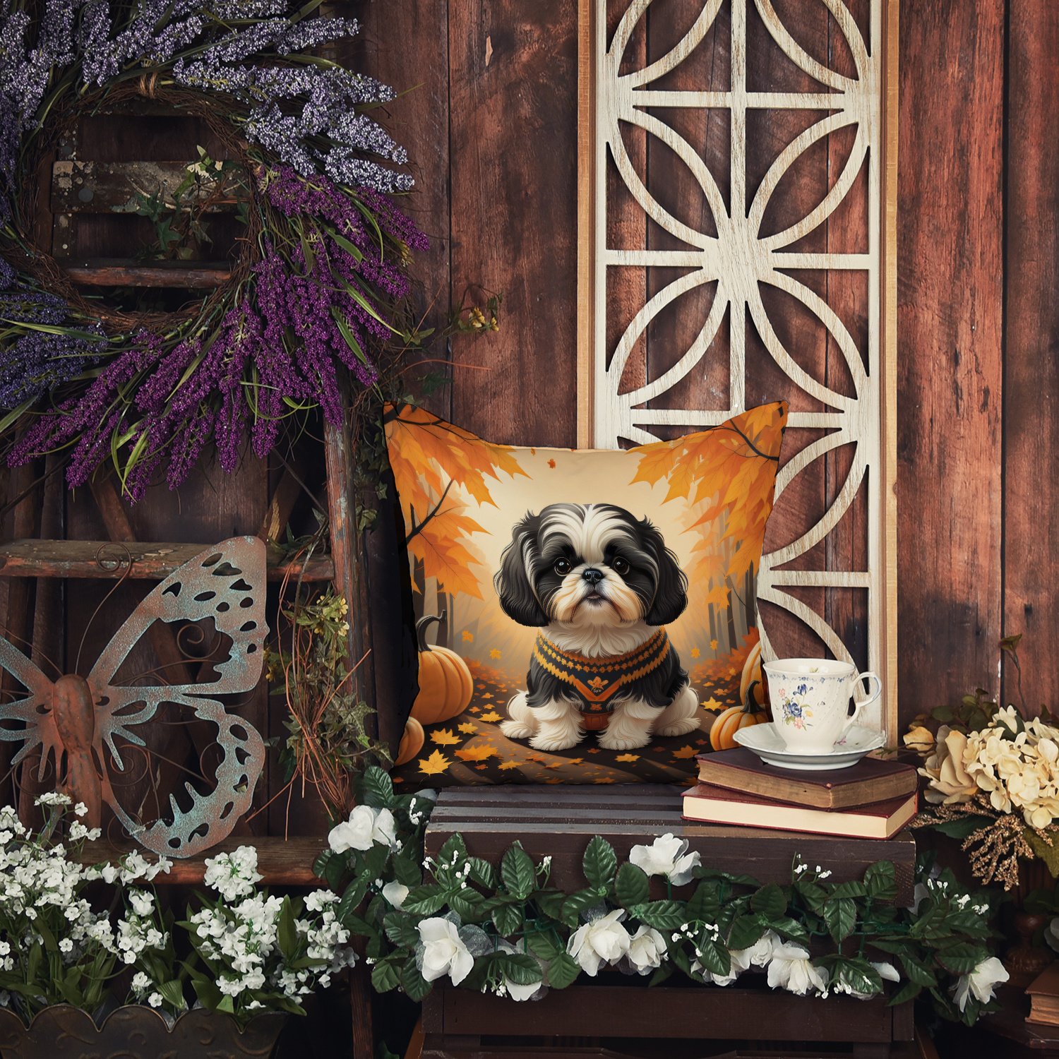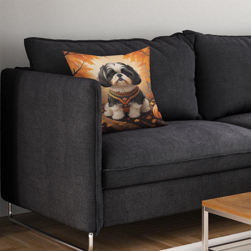 Shih Tzu Fall Throw Pillow Machine Washable, Indoor Outdoor Decorative Pillow for Couch, Bed or Patio, 14Hx14W