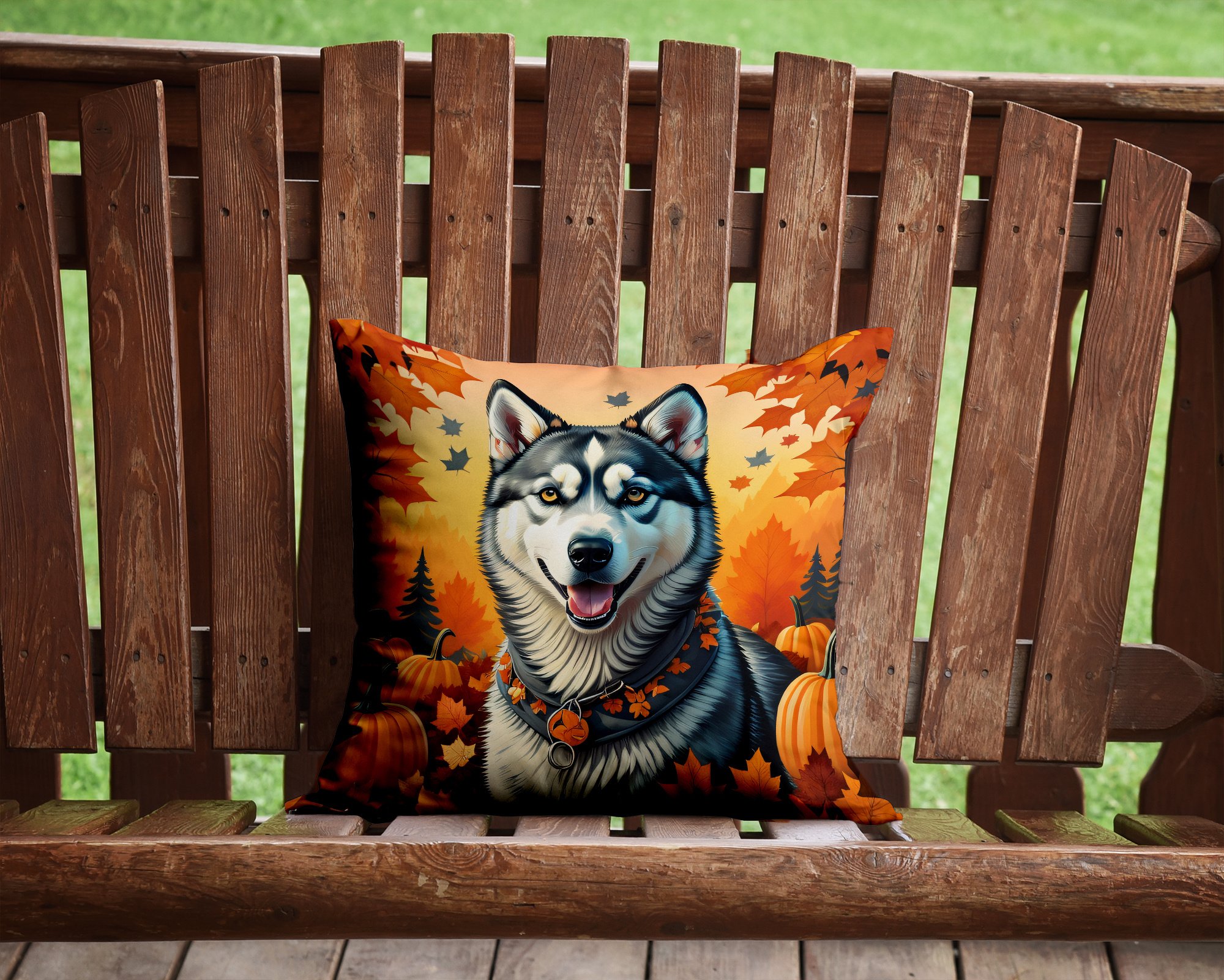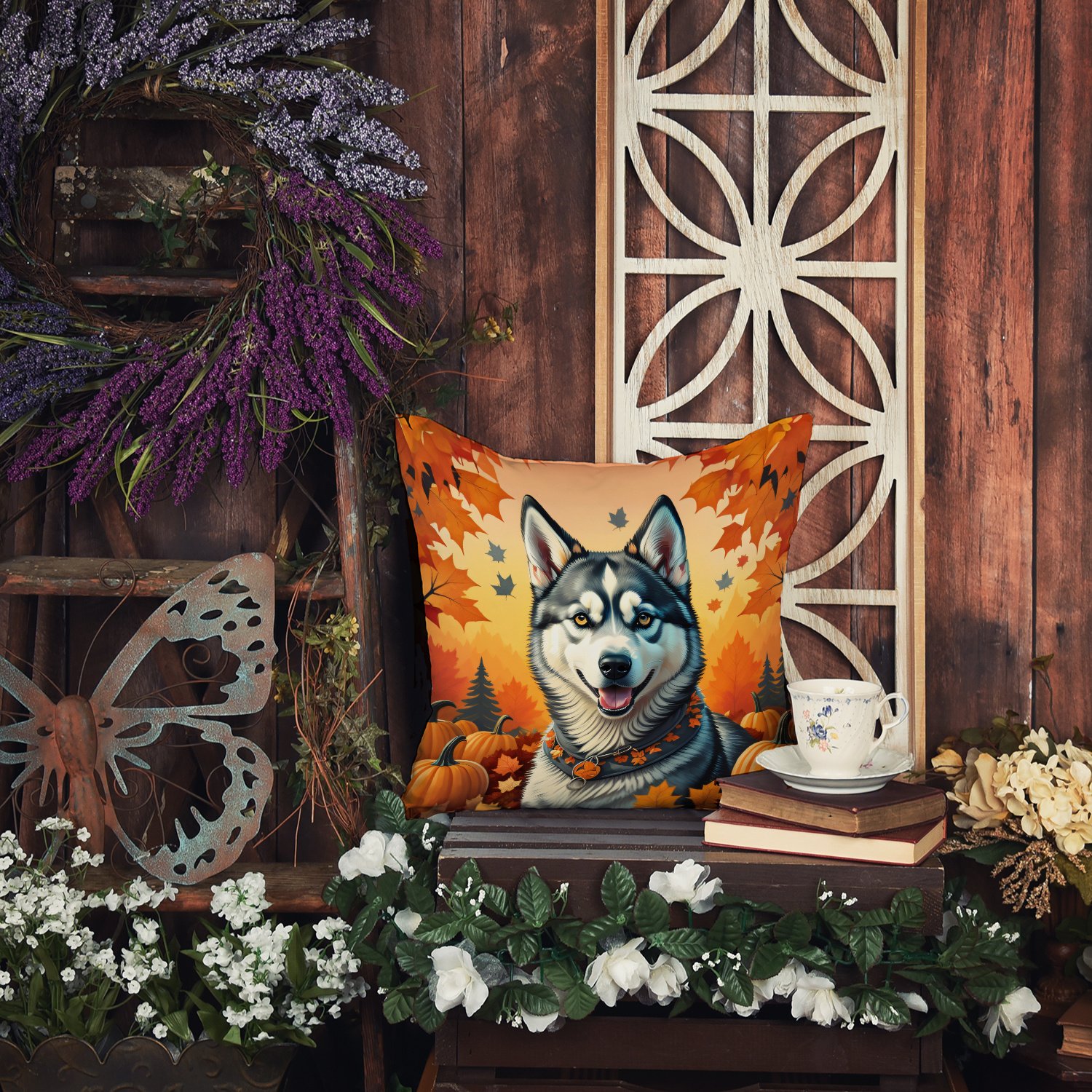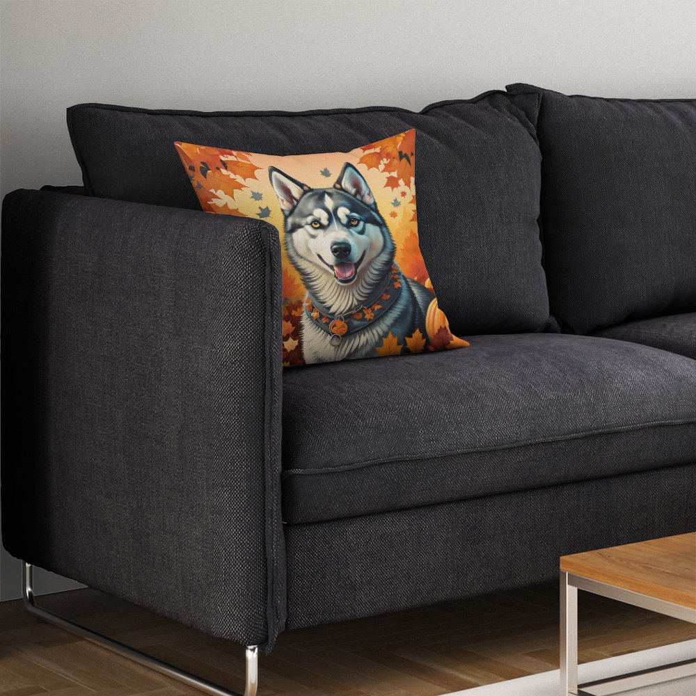 Siberian Husky Fall Throw Pillow Machine Washable, Indoor Outdoor Decorative Pillow for Couch, Bed or Patio, 14Hx14W
